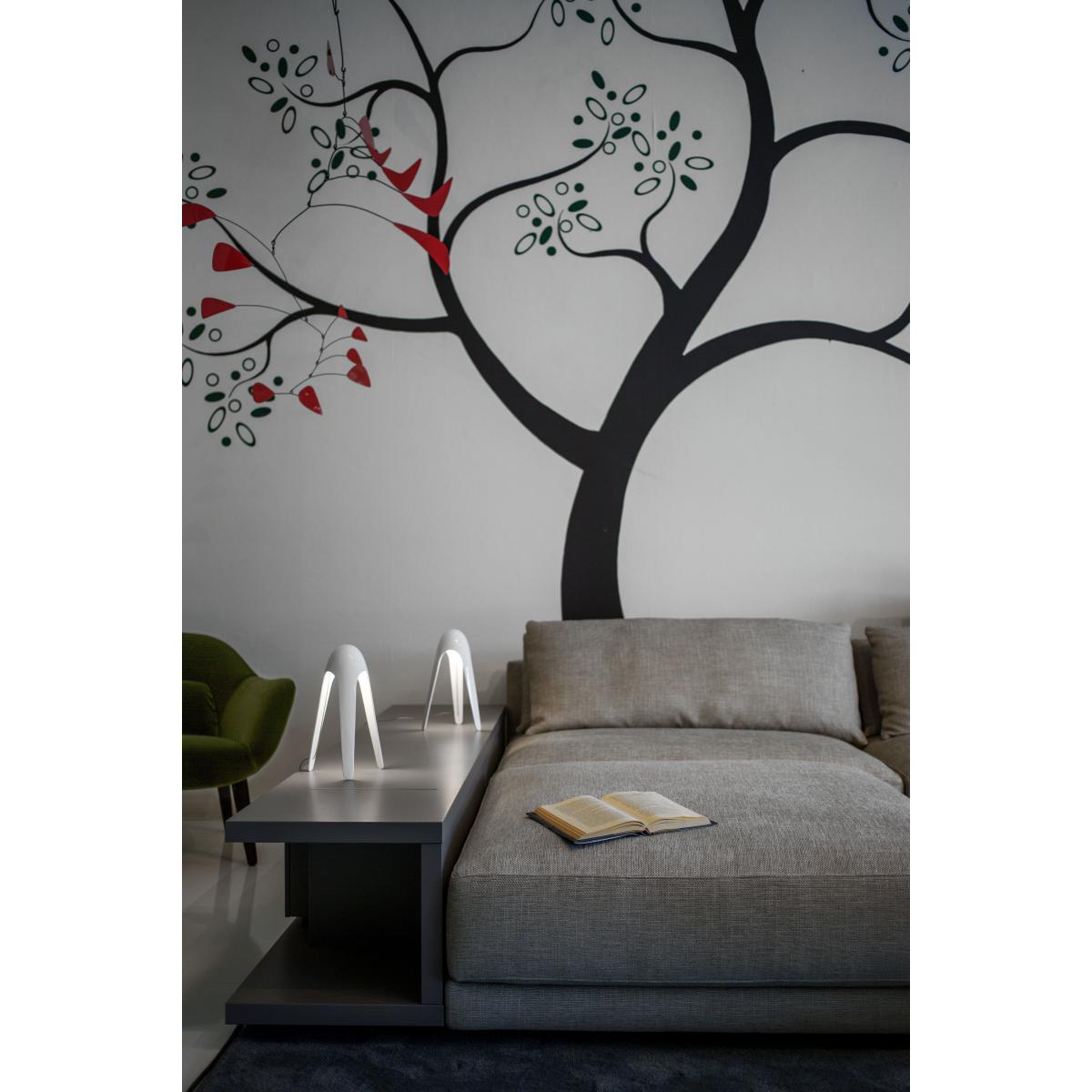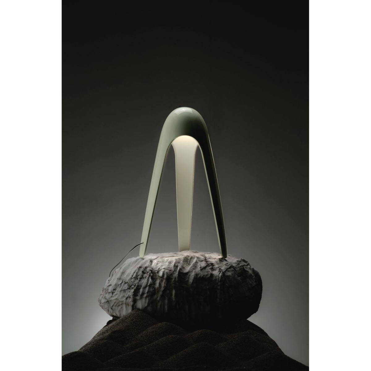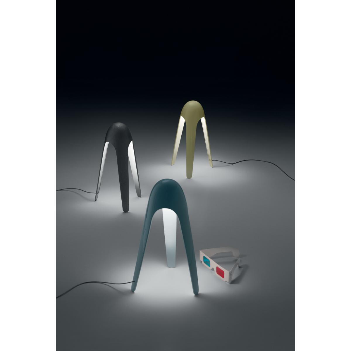 A futuristic and unusual style lamp with surprising biomorphic lines. Cyborg is a wonderful example of Karim Rashid's extravagant style. The sensual, soft lines break with our very strict and linear everyday environments. The resolutely modern design of this lamp uses the language of curves, close to the high-tech spirit, the aeronautical world as well as plant, animal and human shapes. Cyborg is made from a single moulded aluminium piece. Inside the dome, the opaline polycarbonate diffuser filters light for optimal and non glaring lighting. This lamp has a tactile switch: just touch the lamp body to turn the lamp on and off. For Karim Rashid, it is important that objects appeal to our sensual side, that it retains a certain truth and is not necessarily "over-embellished, the object needs to be human. That's what the designer means by "essensualism".