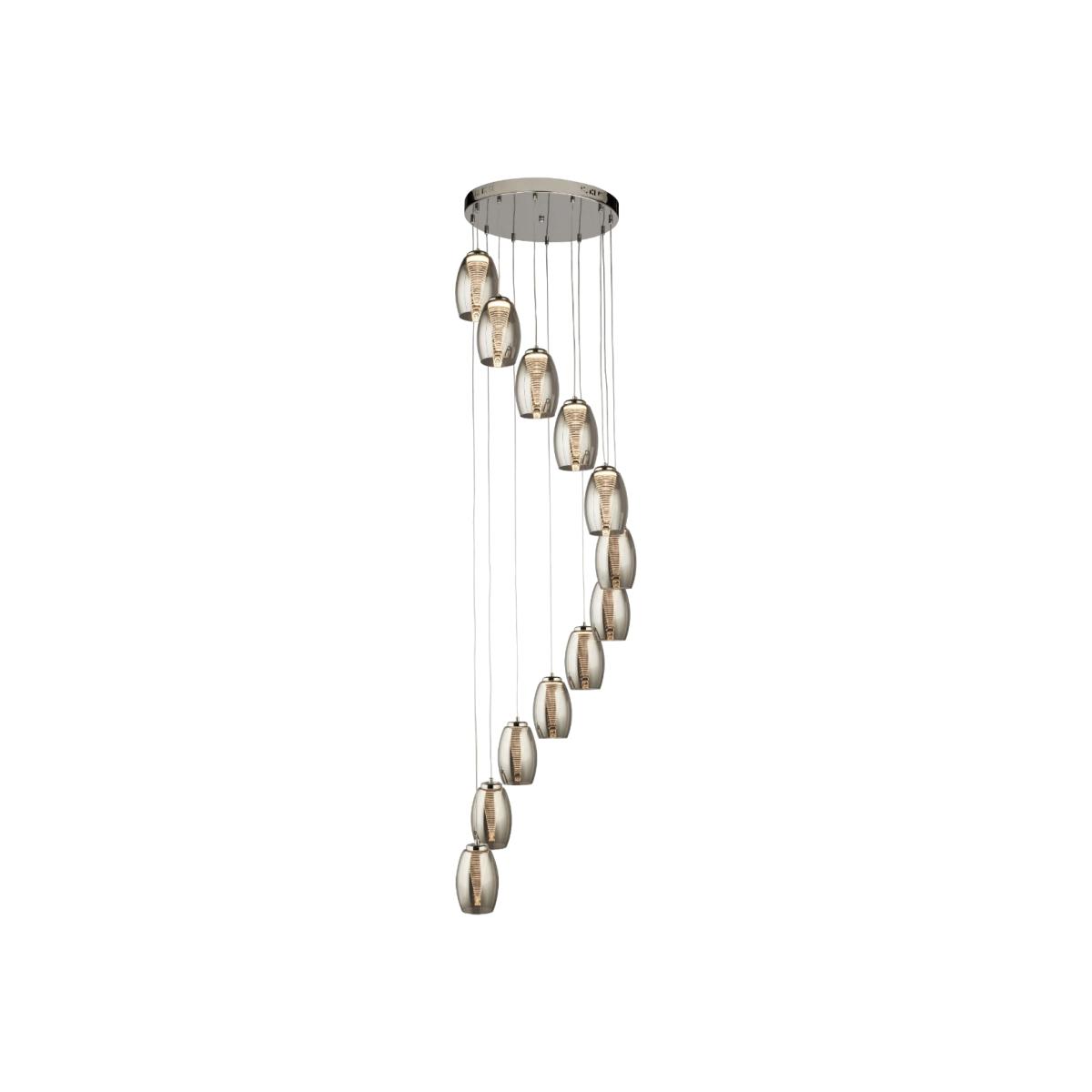 Contemporary Cascading 12 Light Smoked Glass Ceiling Pendant. Update your space with the beautiful Cyclone 12 Light Smoked Glass Ceiling Pendant. Featuring a cascading design and smoked glass detailing, place this fitting in any lounge, hallway and bedroom as an eye-catching feature.
