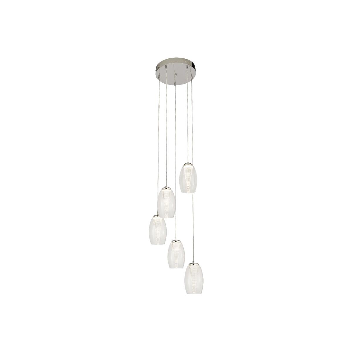 Contemporary 5 Light Clear Glass Ceiling Pendant Add a contemporay twist to your home with the Cyclone 5 Light Clear Glass Ceiling Pendant, exclusive to Pagazzi. Boasting a polished chrome finish and clear glass detailing. Place above islands, dining areas and breakfast bars.   Contemporary 5 Light Clear Glass Ceiling Pendant Add a contemporay twist to your home with the Cyclone 5 Light Clear Glass Ceiling Pendant, exclusive to Pagazzi. Boasting a polished chrome finish and clear glass detailing. Place above islands, dining areas and breakfast bars.