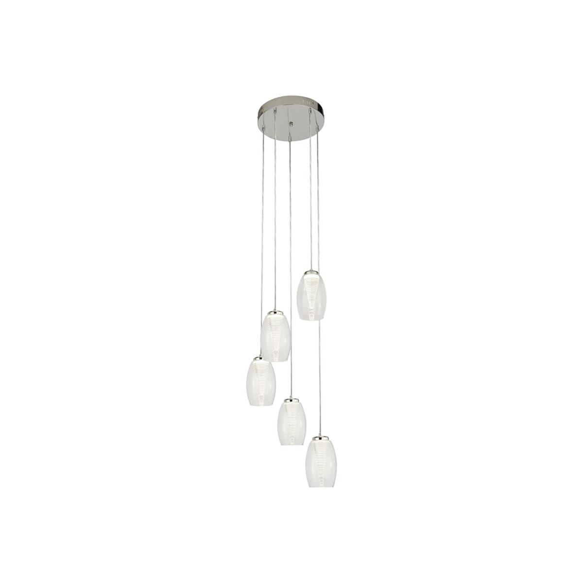 Cyclone 5 Light Mu Lighti Drop Pendant, Clear Glass 3000K - Chrome
