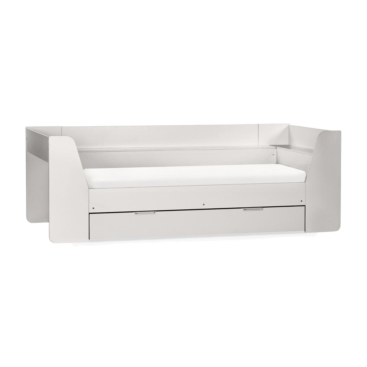 Offering a modern look, the Cyclone Daybed provides the perfect blend of style and functionality to any kid's bedroom. Featuring a large pull-out drawer with two embedded handles and a shelving unit on the top ideal for storing and organsing key essentials. Creating the perfect versatility for your little ones for lounging and sleeping. Available in All White and Taupe. Offering a modern look to any kid's bedroom