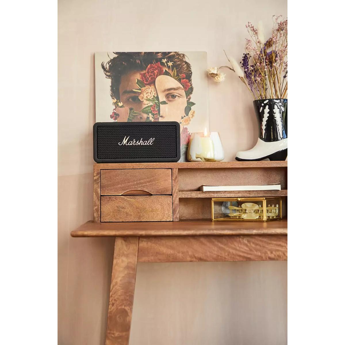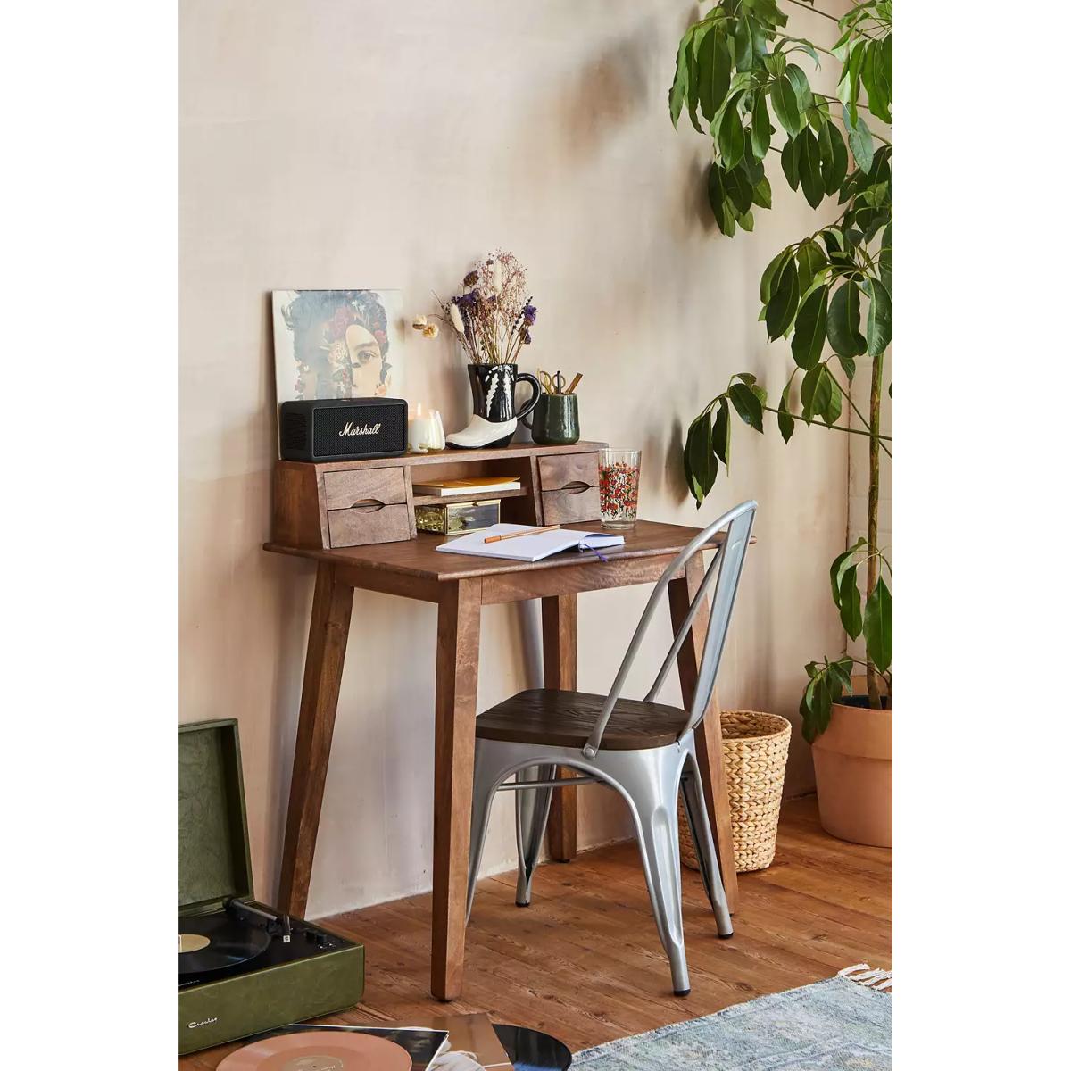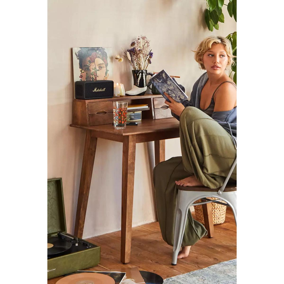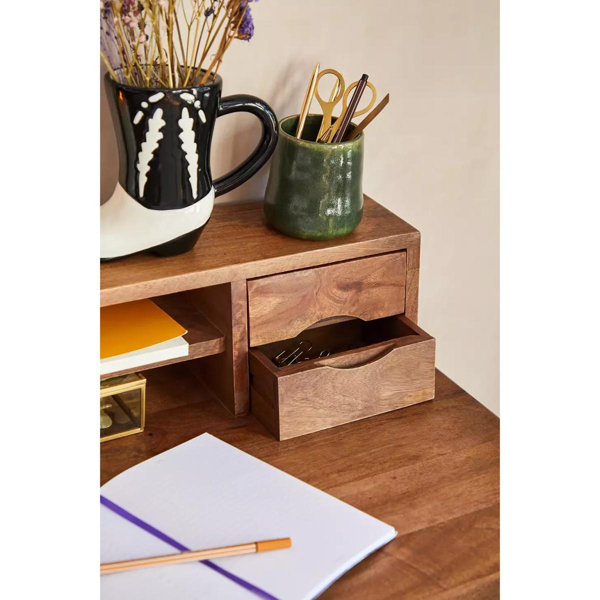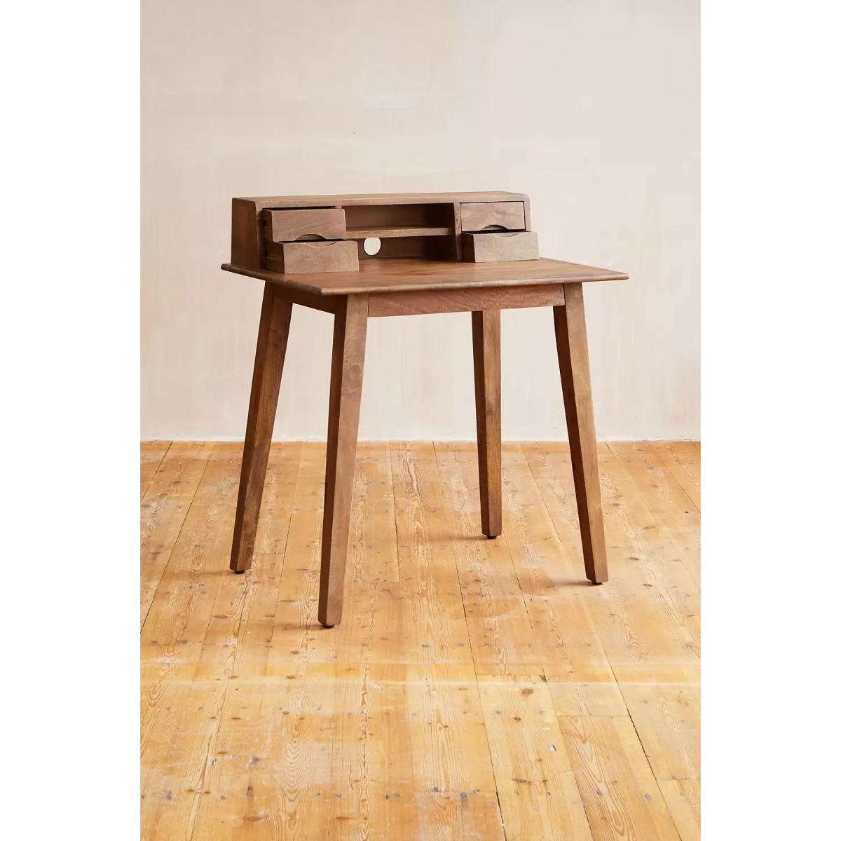 Work at home with the mid-century Cynthia desk in your space. Crafted from soft, dark washed mango wood with an aged patina finish. Complete with a rectangular desktop, an upper shelf unit with four pull-out drawers and tapered, angled legs creating a sturdy base. Finished with a hole cut-out for neatly threading wires through. *Online return only. This item cannot be returned instore. Please note furniture items currently cannot be shipped to Northern Ireland or The Republic of Ireland. Delivery of large furniture items may take 1-2 weeks and are therefore not eligible for Next Day Delivery.* **Content + Care** \- Assembly required - [instructions](https://assets.ctfassets.net/q602vtcuu3w3/2JqxosTaJuLJCglJHi2E8G/6ccc650bf4341c4561a6968d9b0f99ee/Cynthia_Desk_Assembly_. Instructions.pdf) and hardware included \- Mango wood \- Wipe clean **Size** \- Dimensions: 80cm x 51cm x 90cm \- Shipping container: 90cm x 43cm x 61cm