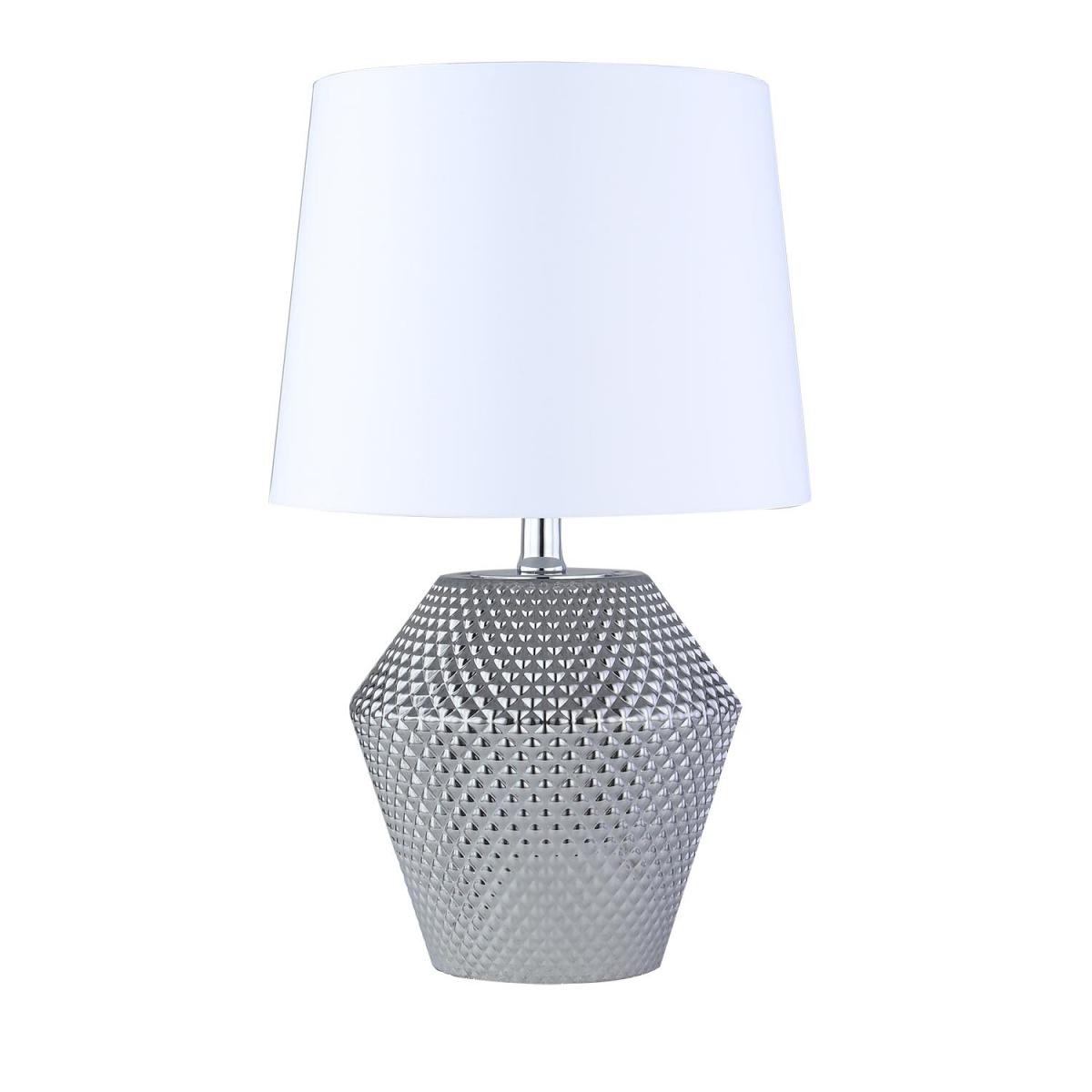 Super modern and a little bit futuristic, the Cyrilla Glass Table Lamp will look fantastic on your sofa side table. The base of this lamp has been painted with a high shine metallic paint and features a textured diamond pattern, which will reflect to create interesting visuals whenever you're near.