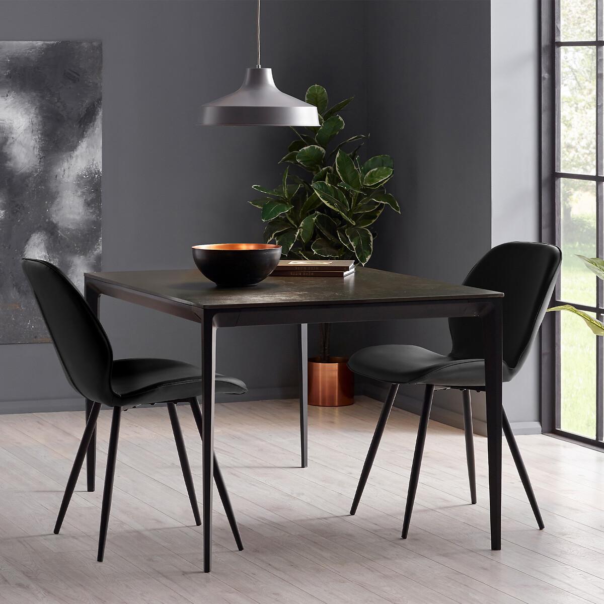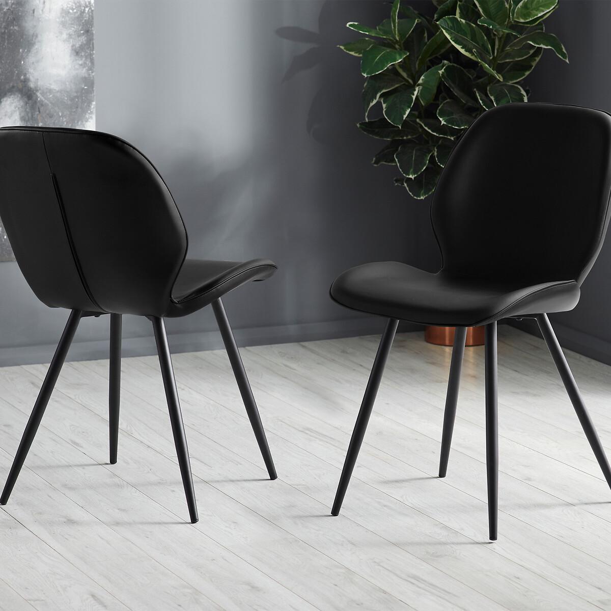 Introducing the Cyrus dining chairs. Simple and sleek, with a clean armless silhouette and slanted back, these chairs are finished off with tapered powder coated steel legs. Their understated design means they are sure to fit in any dining room, and their wipe-clean upholstery makes them a practical choice. Product details • Set of 2 • Faux leather upholstered seat with piped edging • Partial assembly required (legs/feet only) • Fixings supplied • Care advice - wipe clean with a soft cloth • 12 month manufacturers warranty. Product Composition - 25% Metal, 25% Wood, 25% Foam, 25% Fabric. Product Dimensions - 62 cm x46 cm x82 cm , Weight - 9 KGPackage Dimensions - 62 cm x 60 cm x 51 cm, Weight 11.5 kg. This product will be dispatched by one of our trusted suppliers. You’ll be contacted by their selected courier about your delivery. Please note: this product cannot be delivered to all Offshore Islands, Northern Ireland or Republic of Ireland.