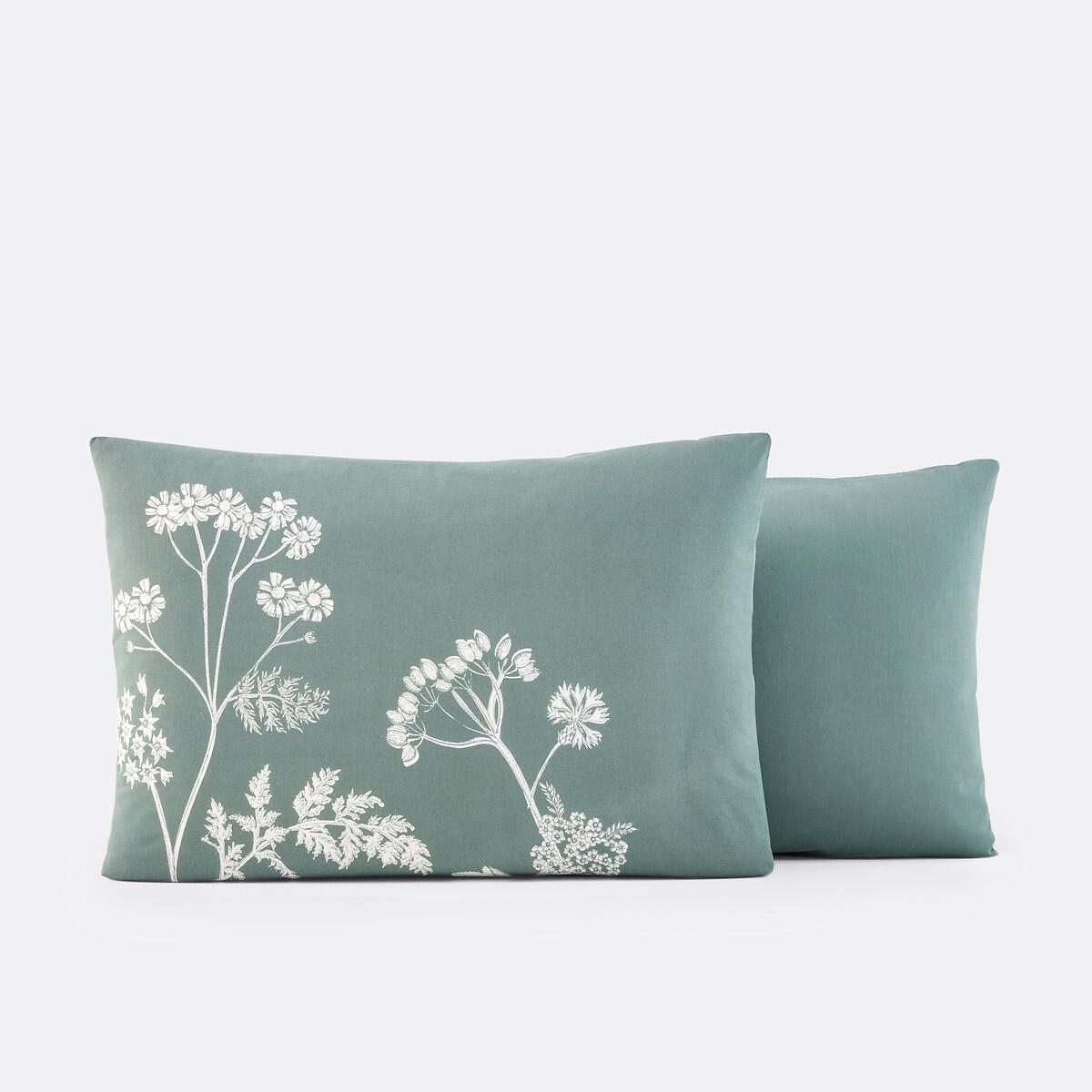 Delicate grasses and light flowers combine with soft green. For a charming, poetic look. A tribute to spring. Created by La Redoute Interiors. Cotton is part of our daily lives. We love it for its suppleness and softness. Easy Care, it is ideal for the beds of young and old alike!Product Details • 100% cotton • 144 thread count • Front printed with foliage, back plain. Care Advice • Machine washable at 60°C • By washing your laundry at 40°C instead of 60°C, you limit energy consumption. Dimensions • 50 x 70cm: Rectangular pillowcase • 63 x 63cm: Square pillowcase • OEKO-TEX® Standard 100. Standard 100 certification by OEKO-TEX® tests textile products for harmful substances via an independent, international label.
