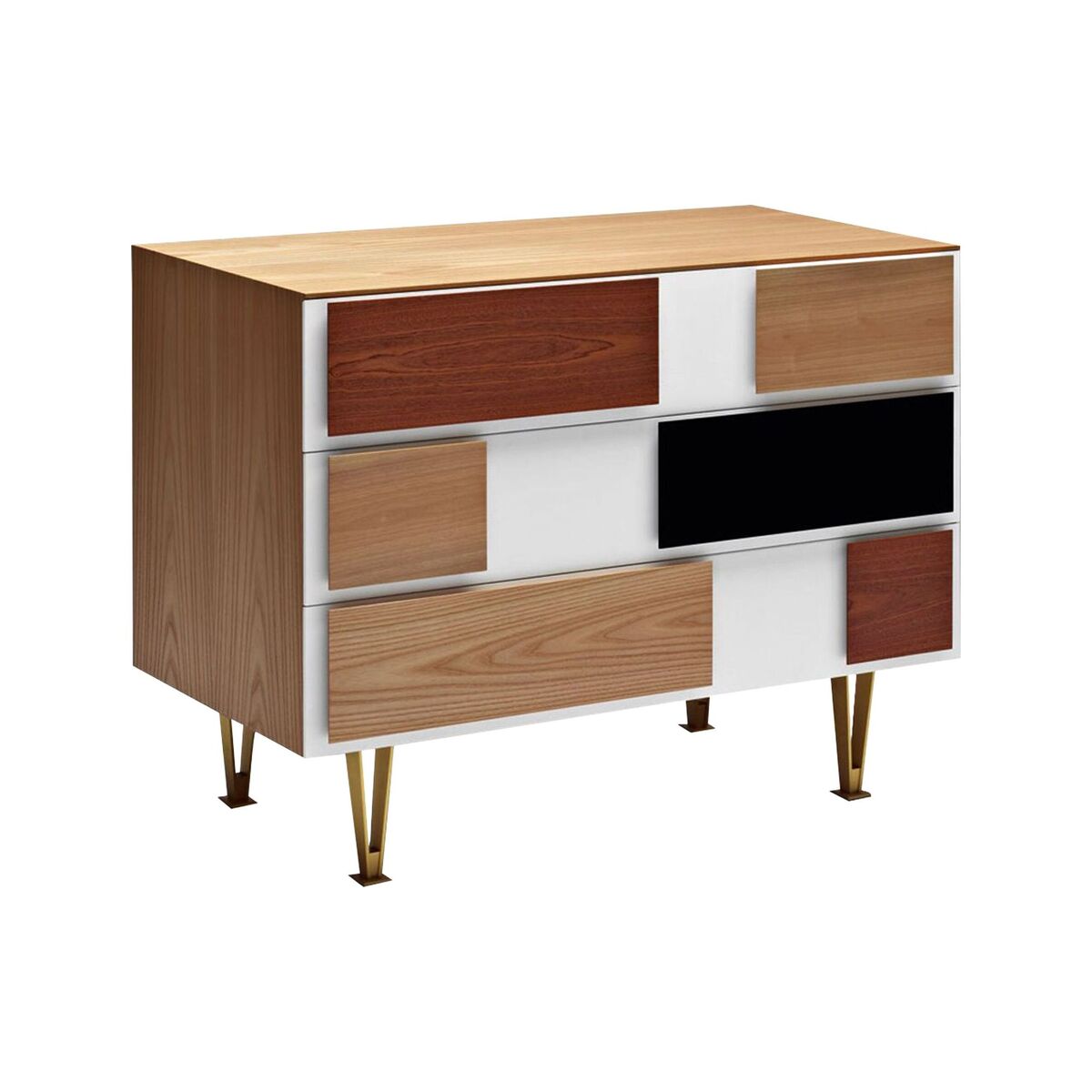 Channel mid-century modern style with Italian designer Gio Ponti's eye-catching D.655.2 Chest of Drawers. Designed in several versions during the period from 1952-1955, this compact chest of drawers is marked by its hand-painted white drawer fronts with applied handles in various woods: elm, Italian walnut, mahogany and rosewood. The elm wood structure rests on adjustable, satin brass feet and brilliantly showcases the quality mastered in this sleek, geometric cool design.