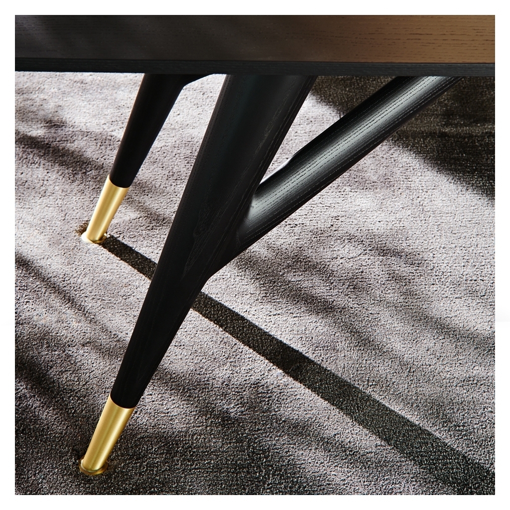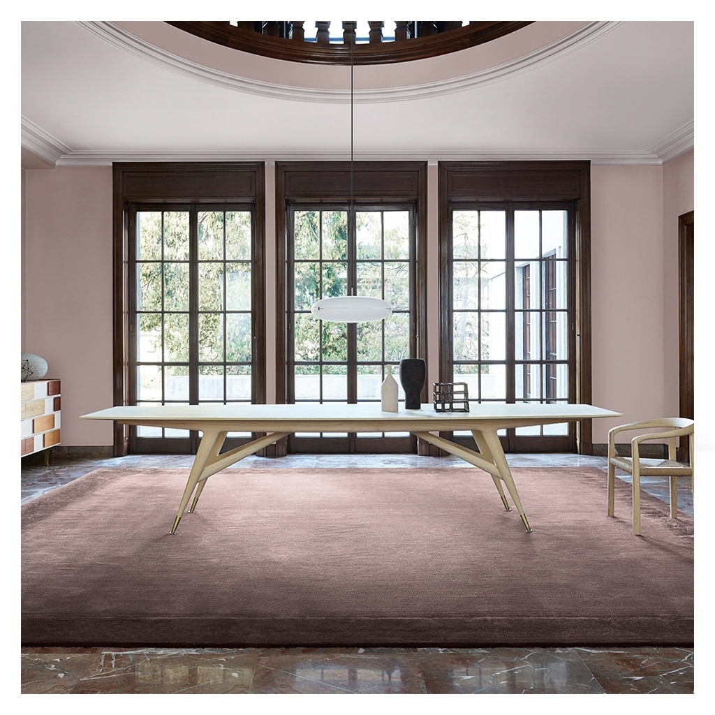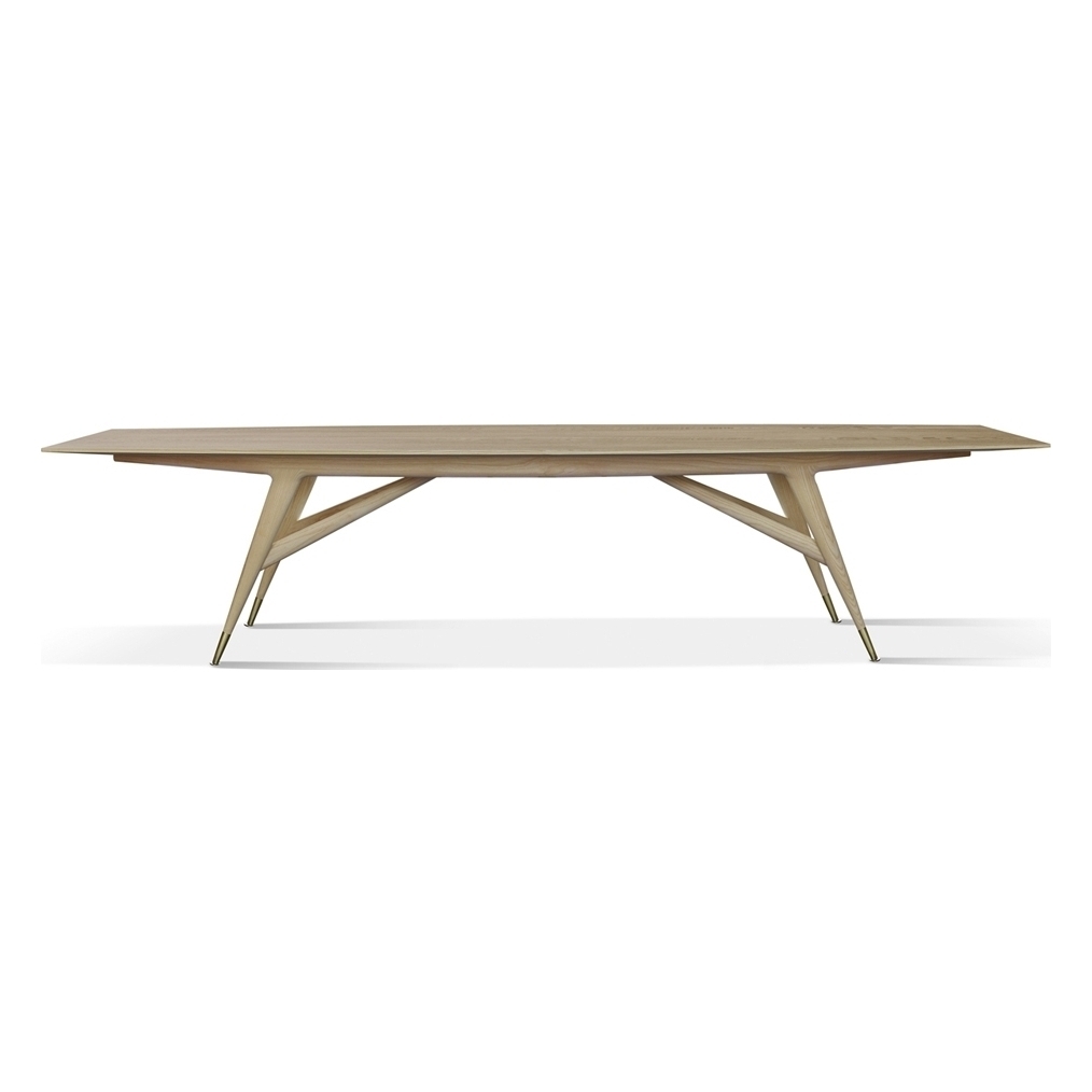 Originally designed in 1959 by Gio Ponti, the D.859.1. A Dining Table in a natural ash finish is expertly crafted by Molteni & C.Initially created for the auditorium that adjoins the Time & Life Building in New York, this scaled-down version of the original design is expertly crafted from solid ash with a beautiful grain. Showcasing a trapezoidal base crafted from the same material, the table is accented with satin brass feet for a luxurious finish. A refined addition to any space, this design classic would enhance any home with its clean lines, contemporary silhouette and expert craftsmanship. Renowned across the globe for his extensive contribution to design, master in Italian architecture Gio Ponti helped to create the prestigious Compasso d'Oro design award. Collaborating with esteemed manufacturers such as Gubi, Cassina and Molteni & C, Ponti's contemporary designs incorporate minimalist, functional design with expert craftsmanship.