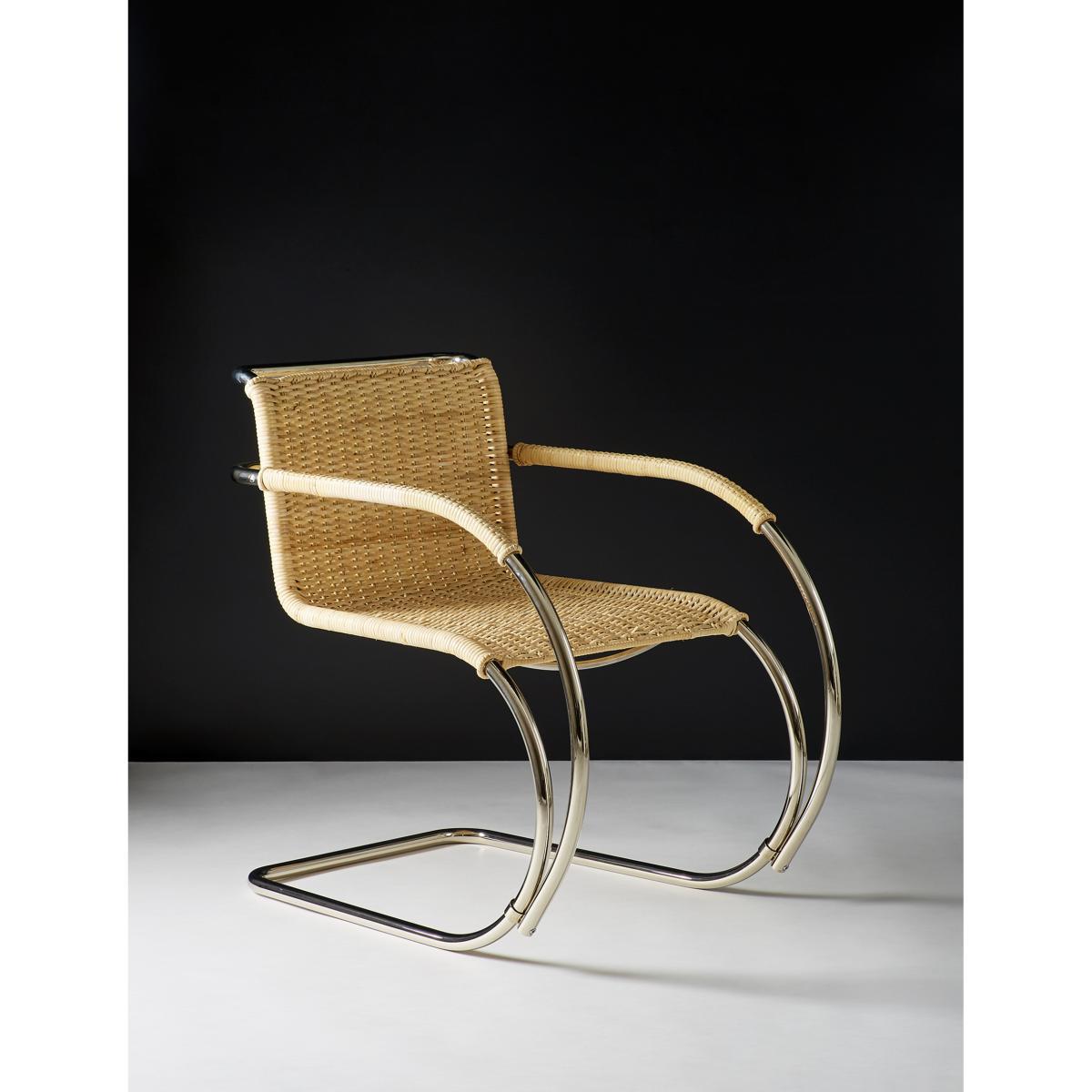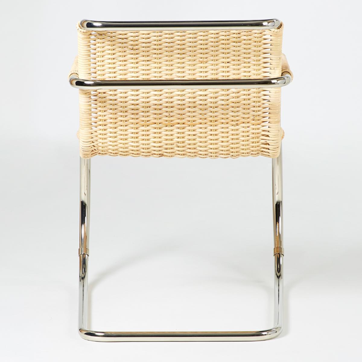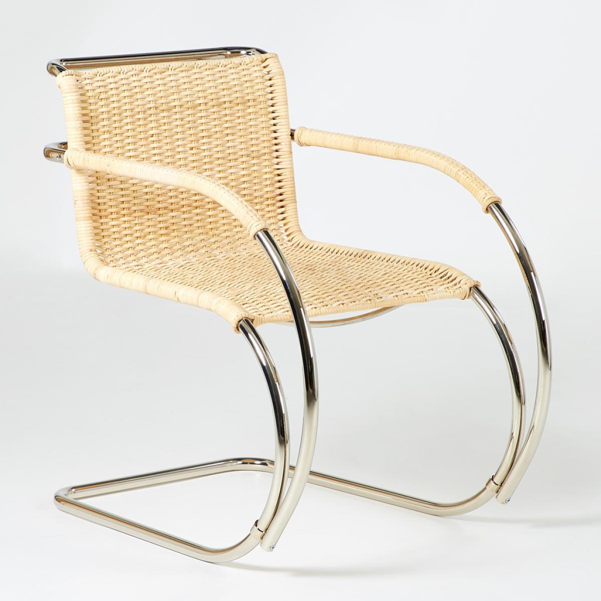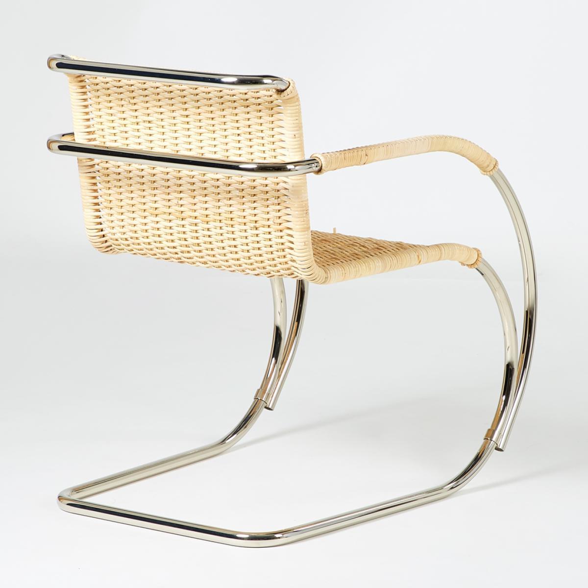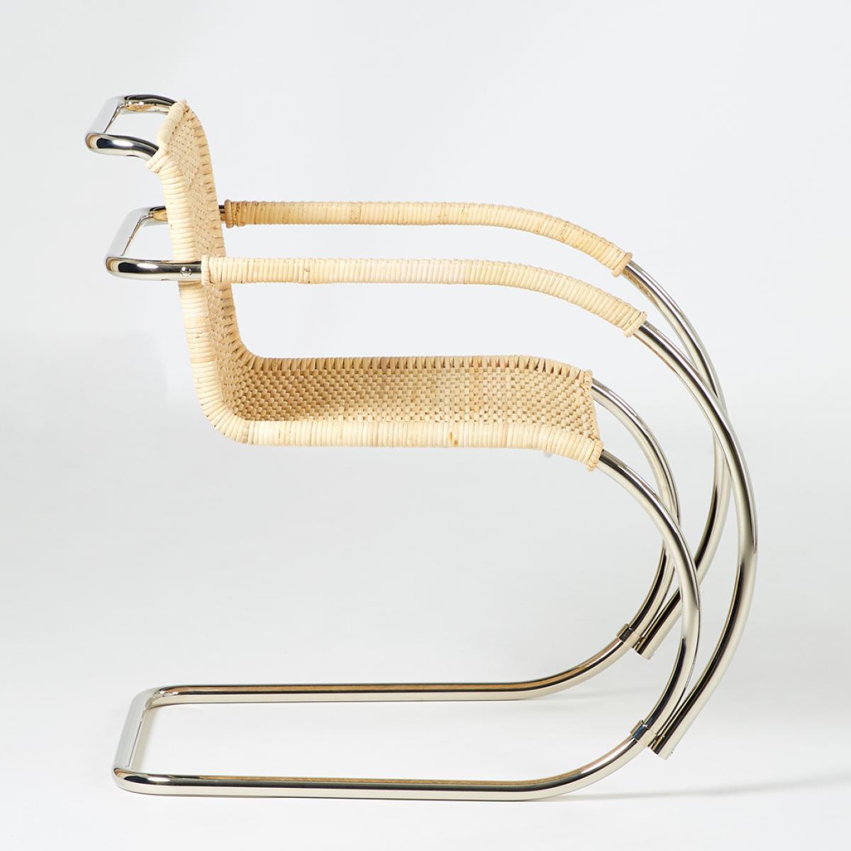 Designed by Ludwig Mies van der Rohe for the Haus Lange in 1927, the D42 Armchair in a natural cane finish is a true design icon that is crafted today by esteemed manufacturer Tecta and is exclusively available at The Conran Shop in the UK. Expertly crafted in Germany from nickel-plated tubular steel and accented with a natural cane woven seat, the chair's frame is cleverly cantilevered for a contemporary aesthetic. The fluid and singular lines of its tubular steel frame create a contemporary structure for the elegant woven cane seat, a revolutionary and never-before-seen shape at its time of conception in the 1920s. Championing a 'less is more' approach to design, German-American architect Ludwig Mies van der Rohe is widely regarded as one of the pioneers of modernist architecture. The third and final director of the Bauhaus, he has gone down in history as one of the most important contributors to modern design.