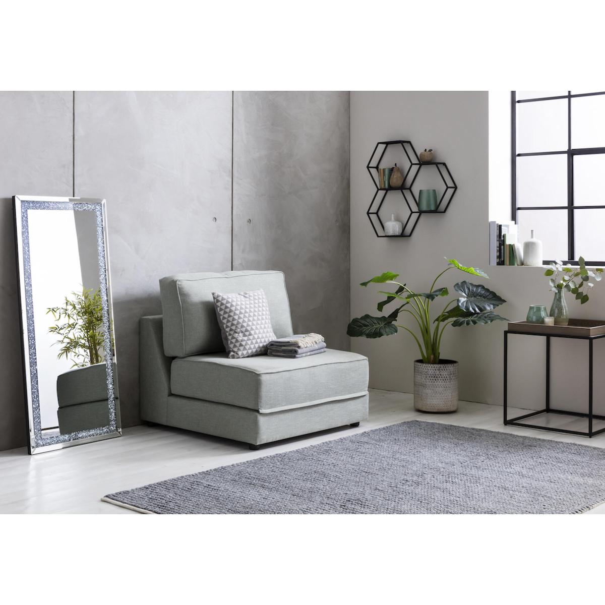 I love the Dacre single no arms sofa bed for its sleek, minimalist look and versatile functionality. The Rhino Grey hue makes it a neutral anchor that works well in both contemporary and more relaxed interiors, like urban apartments or cosy guest rooms. Its clean lines and compact size make it ideal for limited spaces, while its upholstery adds a touch of softness to the overall aesthetic. Styling tips would include pairing it with layered textiles such as throw blankets and cushions in complementary colours or textures to create a welcoming feel. To keep the look modern, consider minimalist side tables or simple floor lamps, and for extra practicality, a cosy rug can make the space inviting when it transforms into a bed.