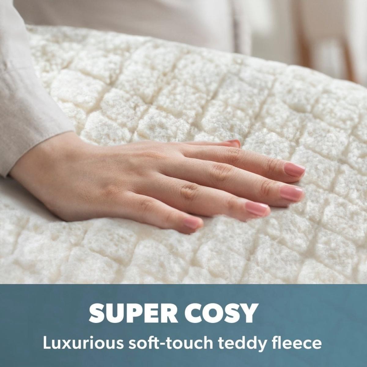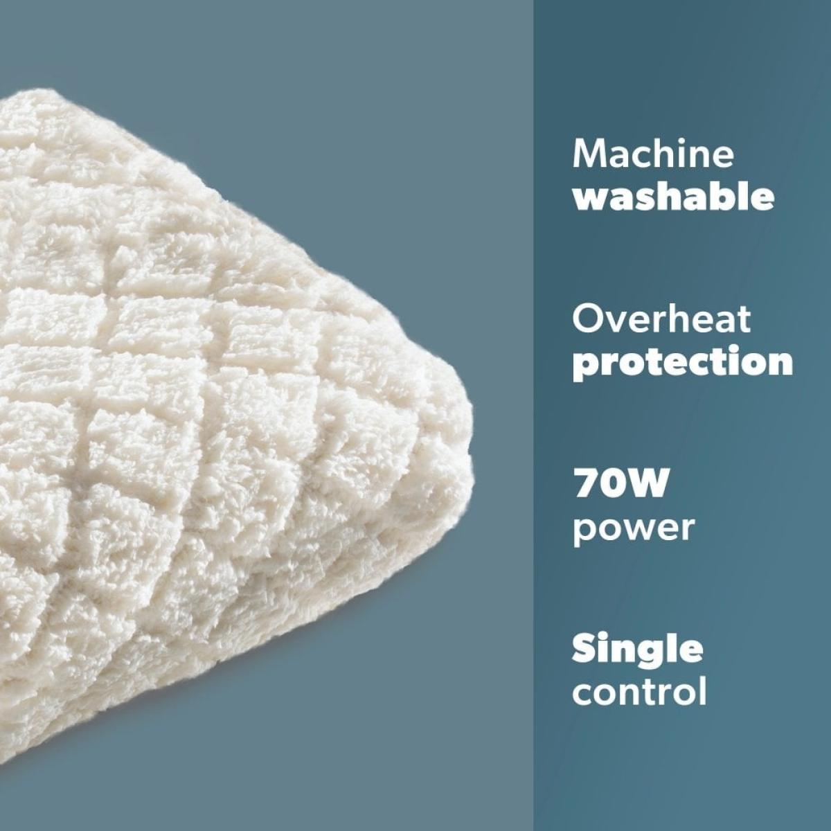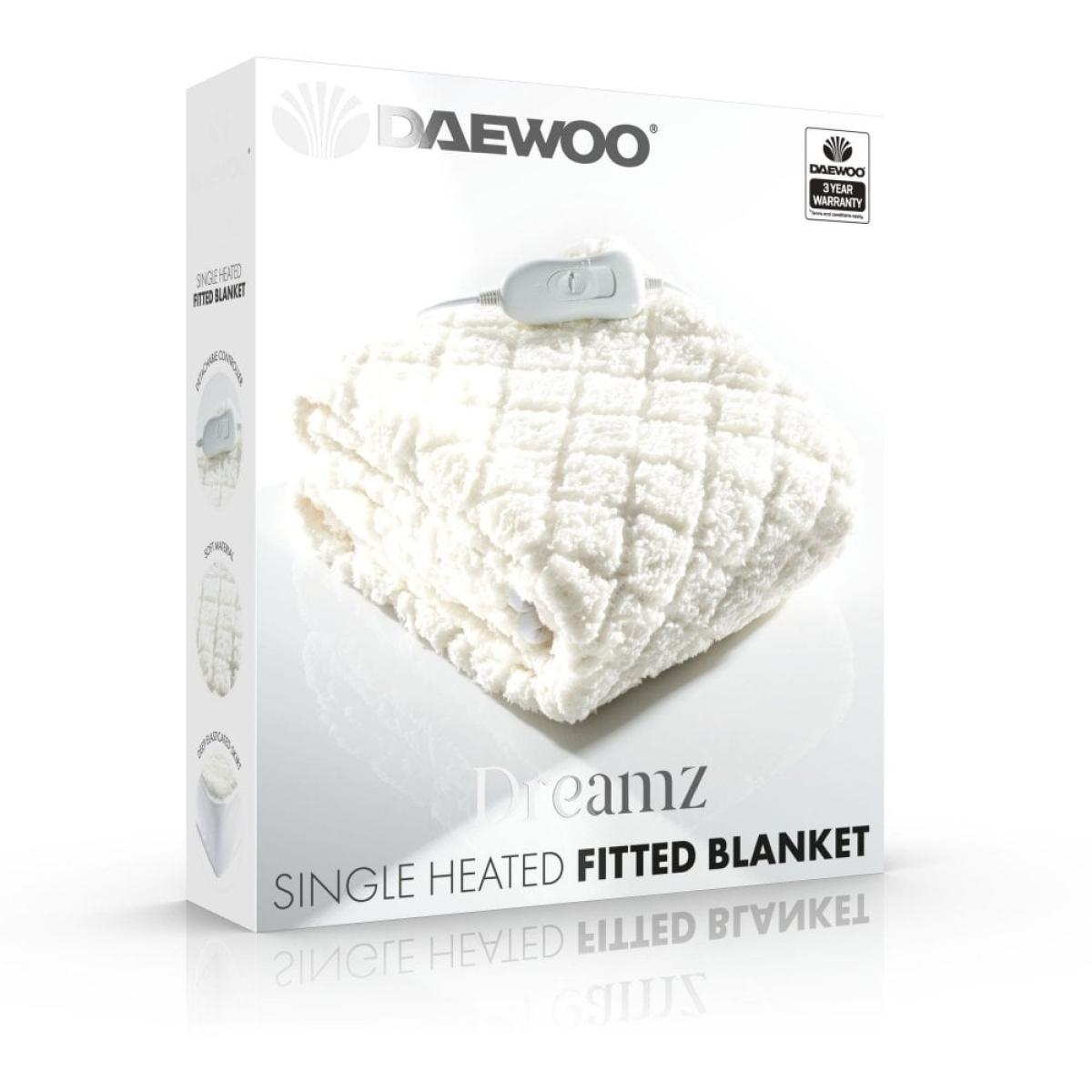 Stay Cosy this winter with the Daewoo Preemium Fleeced Fitted Heated Blanket. Crafted from premium soft fleece material this heated blanket offers warmth and a comfortable plush sleeping surface. The additonal 40cm elasticated Skirt fits snuggly over the mattress. Choose from three heat settingd to find the perfect level of warmth, whether you just need a little heat to take the chill off or a higher setting for those frosty nights. The Double and King Size Blankets come with Dual controls so each side can have a different setting. This Premium Heated Blanket can be used with out worrying about high energy bills, costing from as little as 2p and hour on the full power. For peace of mind the blankert also has over heat protection, and detachable heat controllers so the blanket is also machine washable. Power 120w King/Double 70w single 3 Heat Settings Dual Control - Double and King Elasticated Skirt Machine Washable Over Heat Protection Dimensions Single 153cm x 91cm Double 153cm x 137cm King 163cm x 137cm 3 year extended warranty with online registration All screens vary in colour reproduction and whilst every effort has been made to display the colour as accurately as possible it is for guidance only
