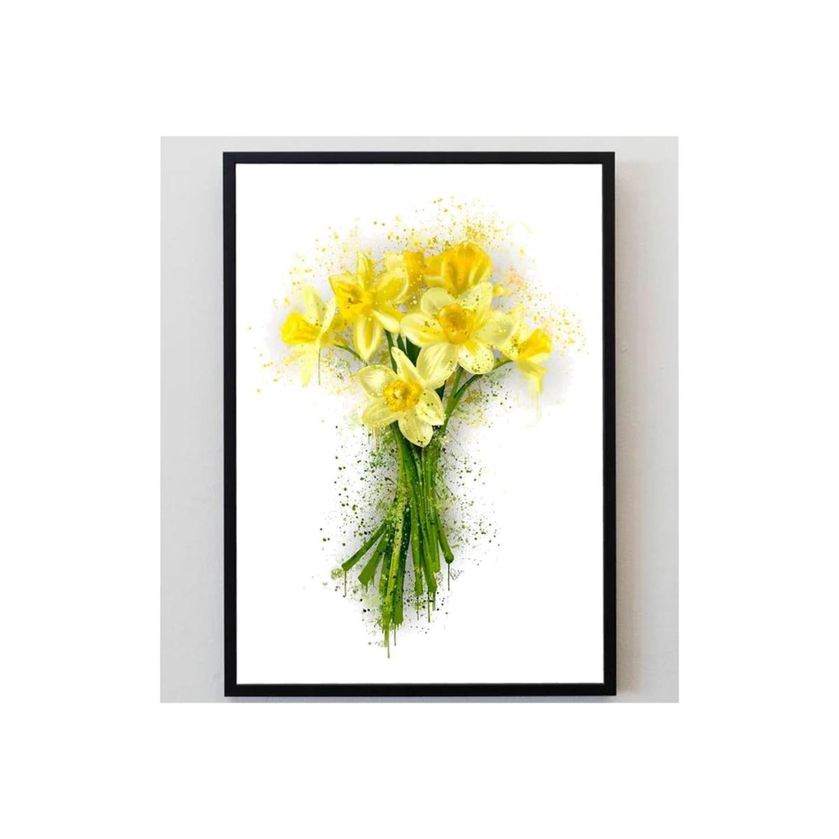 An unframed beautifully bright daffodil flower splatter art print. All prints were delivered flat and unframed. Why not check out our other prints with a variety of different themes there's something for everyone. Add some personality to your home and brighten up your life with a few Pics and Squiggles. Copyright Pics and Squiggles 2020. All rights reserved.