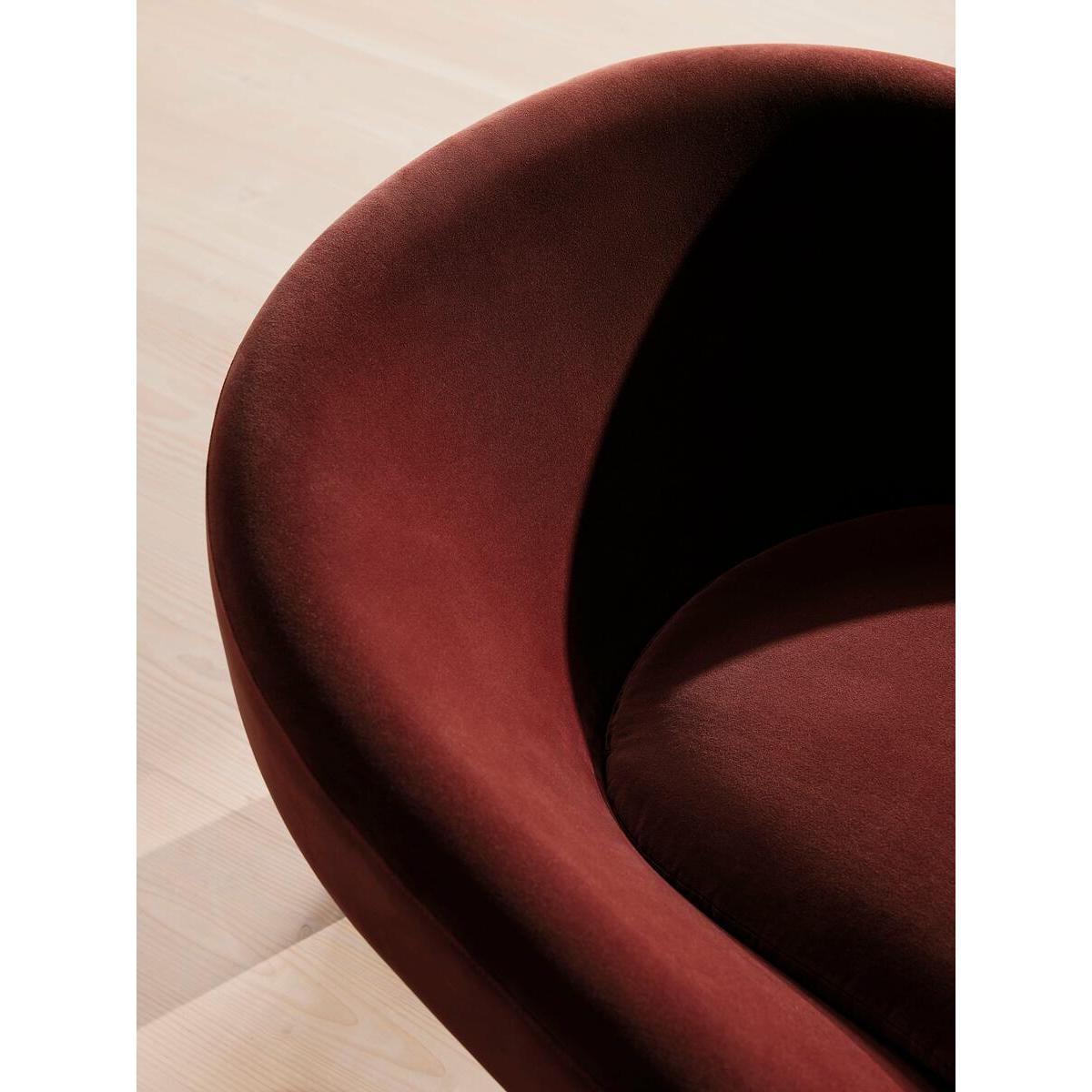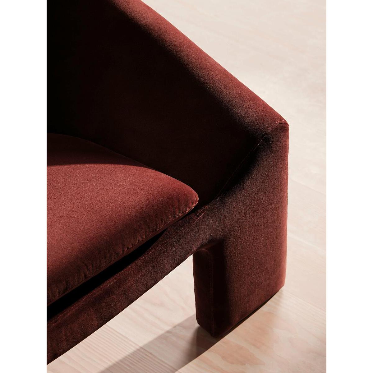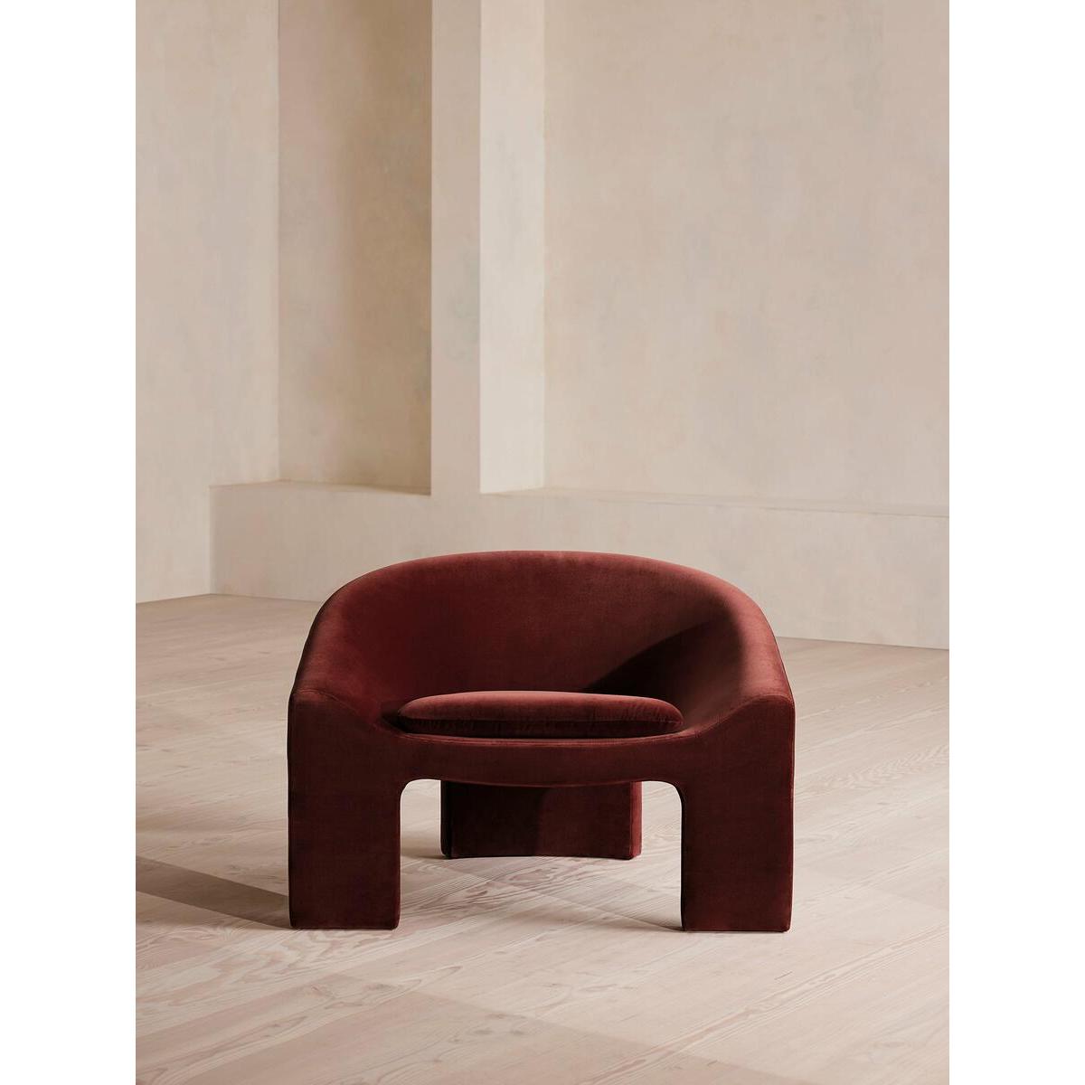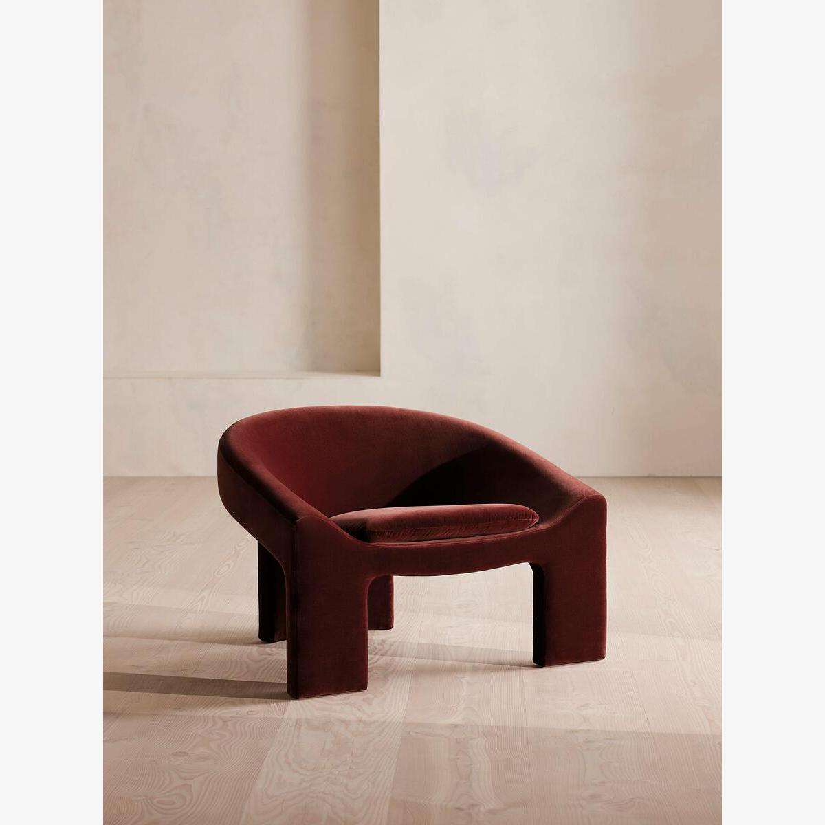 I love the Dafne armchair for its bold colour and plush velvet finish, making it an instant statement piece in any living space. It's versatile enough to sit comfortably in both contemporary and more eclectic interiors, especially when paired with neutral tones to let the rich rust hue pop or with patterned fabrics for added visual interest. Practical styling tips include balancing its cosy feel with sleek, minimal side tables and metallic accents. Its substantial shape makes it great as a feature chair in a lounge or corner nook, offering both comfort and style without overwhelming the room.