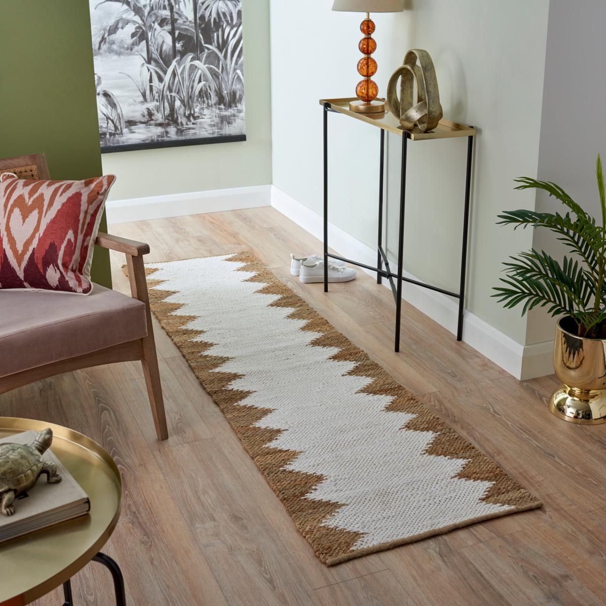 The Dahari Jute and Cotton Runner in white is a versatile piece that adds a natural yet modern touch to any hallway or corridor. I love its neutral tones and textured finish, which work well in both contemporary and Scandinavian-inspired interiors. It’s a practical choice for high-traffic areas thanks to its durable jute and cotton blend, offering a slip-resistant surface that’s easy to maintain. Styling tips include pairing it with minimalist or wooden furniture to enhance the organic vibe, or layering it with colourful or patterned runners for a more eclectic look. It also works well under a console table or alongside a series of frames or artwork to create a cohesive, inviting space.