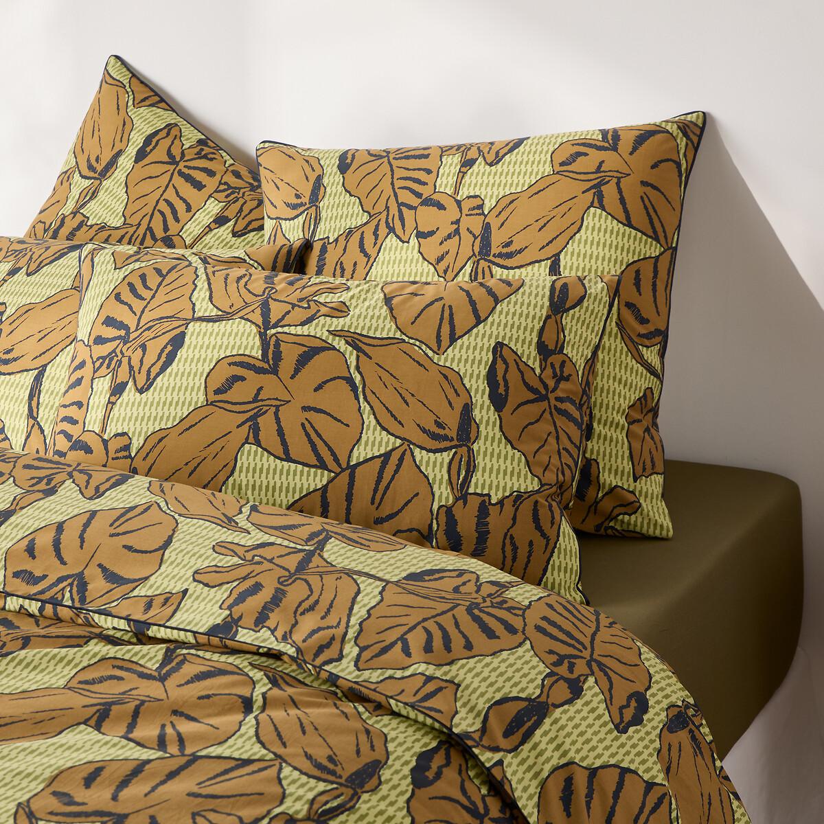 In shades of almond green, you'll discover a whole repertoire of plants, directly inspired by tribal influences... Dahi, in pure cotton percale with contrasting taped edging, is an exclusive design by La Redoute Intérieurs. The cotton percale offers a pleasant feeling of freshness and lightness. Its tight weave makes it particularly soft for premium comfort. A matte and smooth material that will soften over time. Product Details • 100% cotton • Cotton percale • 200 thread count: The higher the thread count, the higher the quality of the weave • Foliage print on both sides • Contrasting taped edging. Care Advice • Machine washable at 40°CDimensions • 50 x 70cm: Rectangular pillowcase • 63 x 63cm: Square pillowcase • OEKO-TEX® Standard 100. Standard 100 certification by OEKO-TEX® tests textile products for harmful substances via an independent, international label.