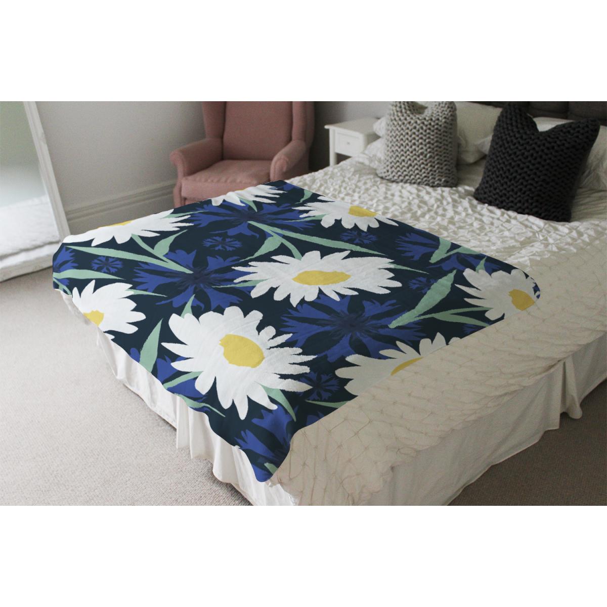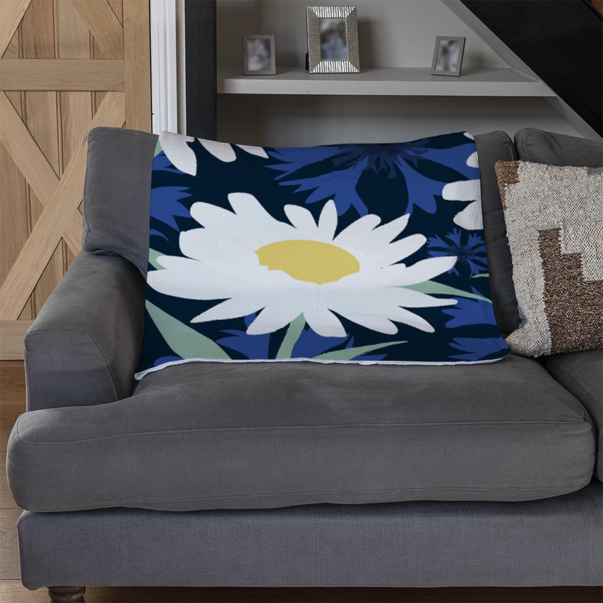 Daisies On Navy Blanket - Blue