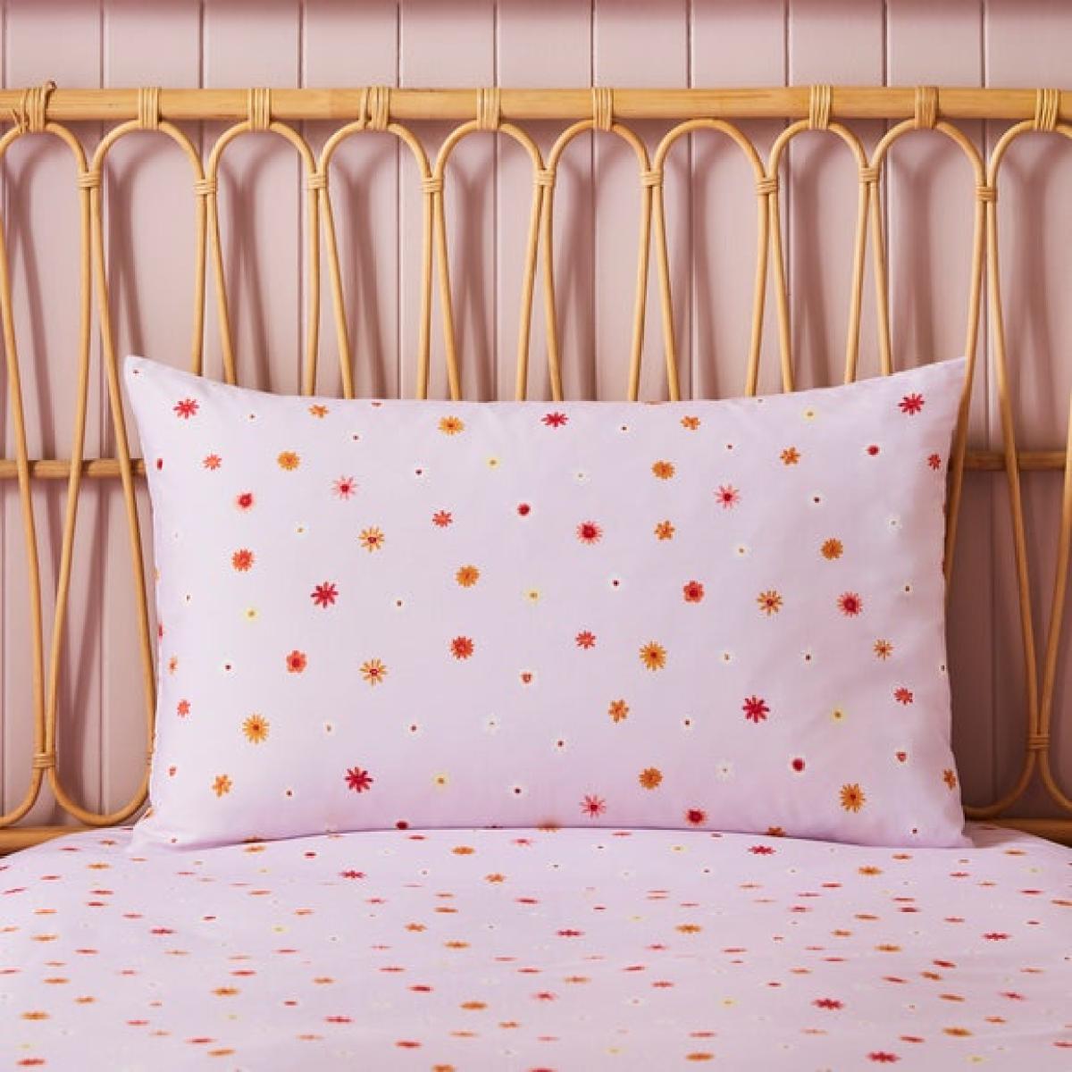 * Easy to care for, breathable Polycotton composition * Delicate yet fun, floral design * Machine Washable * Corresponding items available Delicate, dainty and full of charm, the Daisy Ditsy Duvet Set is a sweet addition to any little one’s bedroom. Its floral print brings a light-hearted, garden-inspired feel, while the polka dot reverse adds a playful twist. Woven from an easy-care polycotton blend, this set is soft, breathable, and designed to withstand busy family life. Secure button fastenings keep everything in place, and it washes easily for fuss-free upkeep.