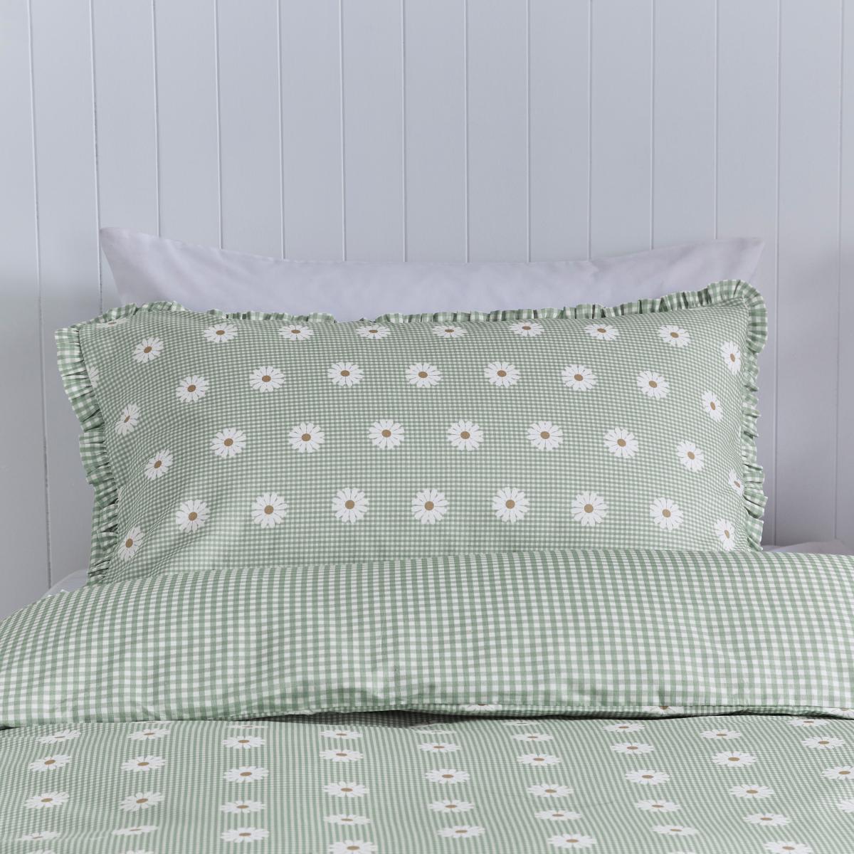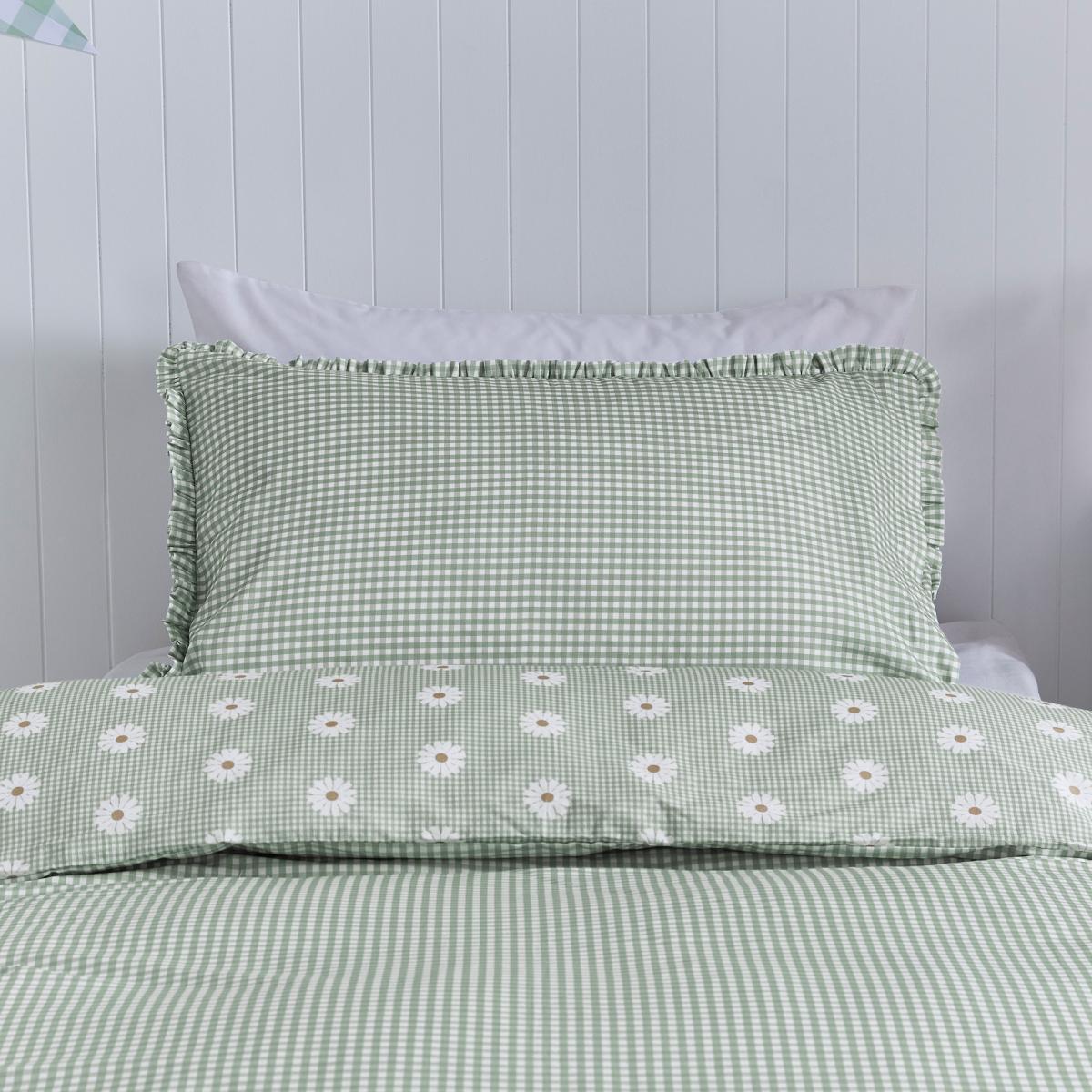 Daisy Gingham Ruffle Trim Duvet Cover Set Green