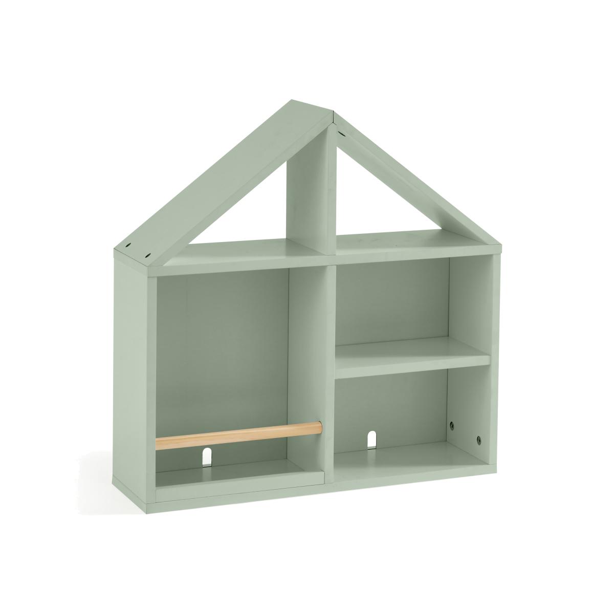 * Wooden shelves * Painted finish * 5 shelf compartments Featuring five wall-mounted shelves in a sweet house-shaped design, it’s perfect for displaying books, trinkets, and keepsakes. Finished in a smooth painted coating, it blends effortlessly into any room, adding both style and practicality.