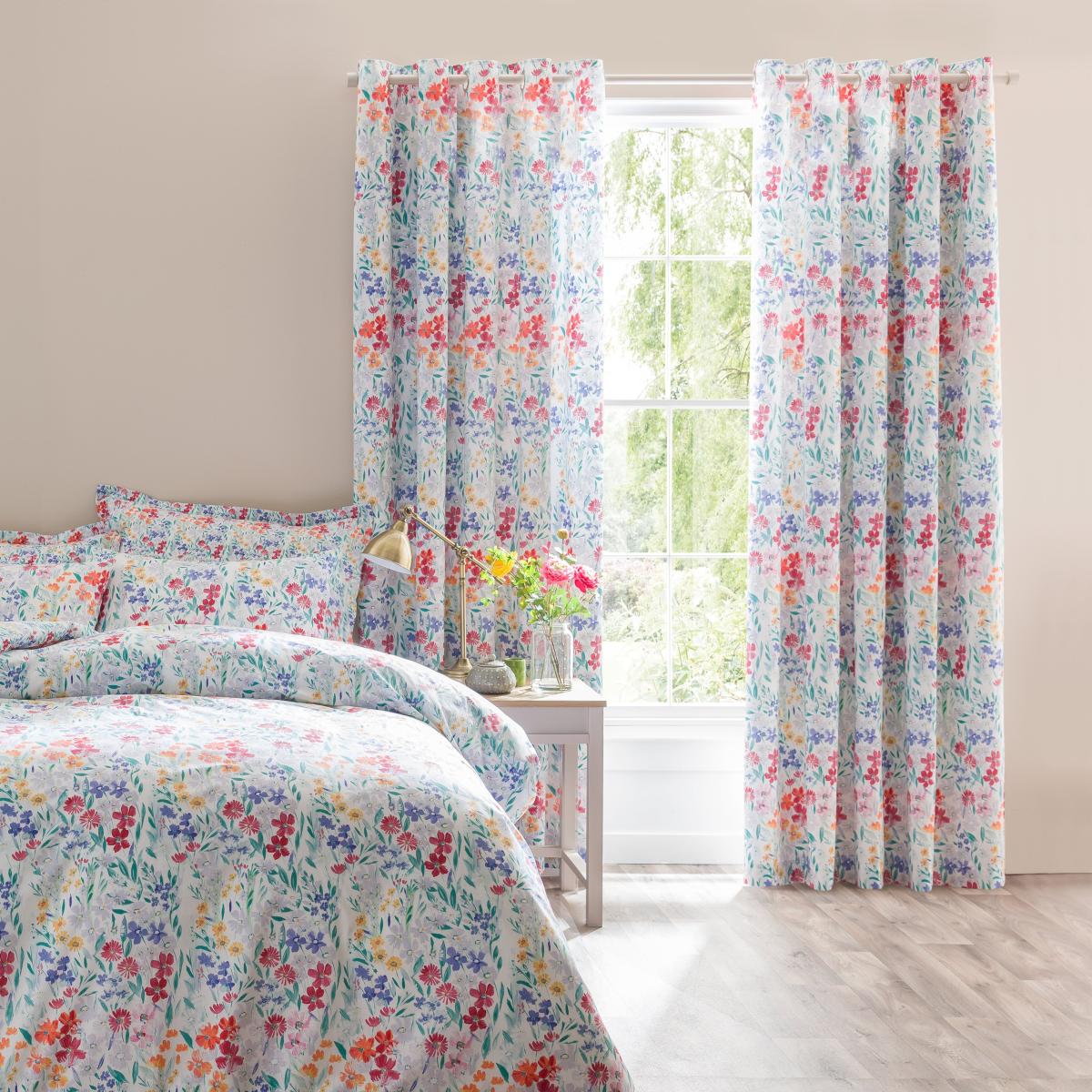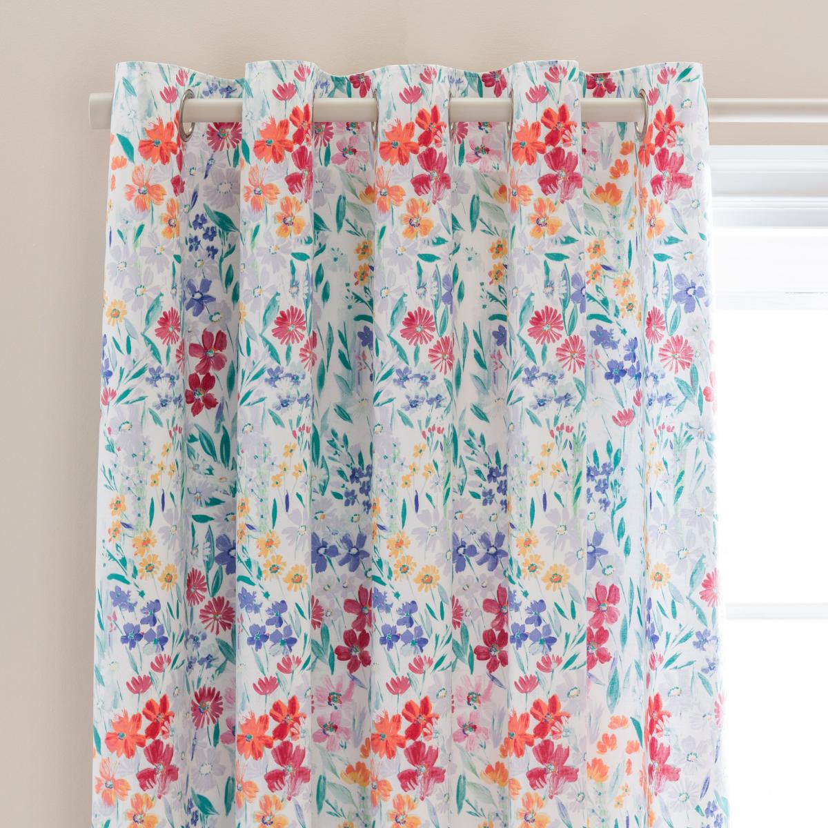 * Includes 2 x curtain panels* Pretty, colourful floral print* Eyelet header for use with a curtain pole* Polycotton face fabric* Blackout lining reducing sunlight entering a room* Coordinating items available Add wild and wonderful blooms to your room with these Daisy Meadow pair of curtains. This fresh set with its stunning multi-coloured flower print will breathe new life into your room. Finished with a blackout lining to reduce sunlight entering your room, these curtains are perfect for keeping the room dark during the daytime. Good things come to those who coordinate, so why not pair it with our matching bedding and oxford pillowcase for a complete look?