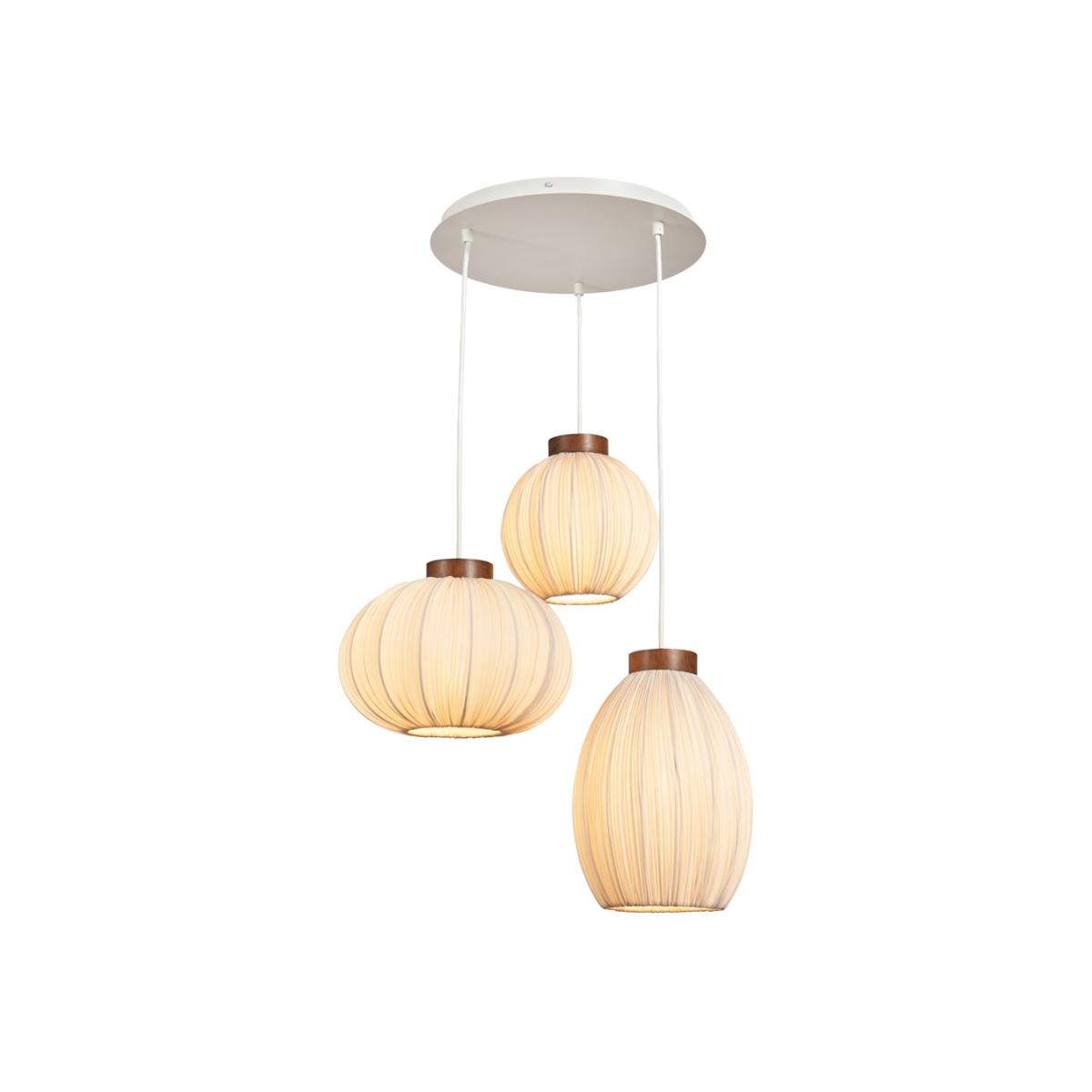 Illuminate your space with the Daisy Cascading 3 Light Fine Pleat Fixture in Ivory and Wood. The fine pleated texture and wooden accents create a harmonious rustic blend of textures and materials. With its cascading design, this fixture becomes a captivating addition that provides both soft illumination and visual interest, perfect for neutral-coloured interior designs. Fine pleated texture and wooden accents for harmonious blend; Cascading design for captivating visual interest; Provides soft illumination and adds texture to your space.
