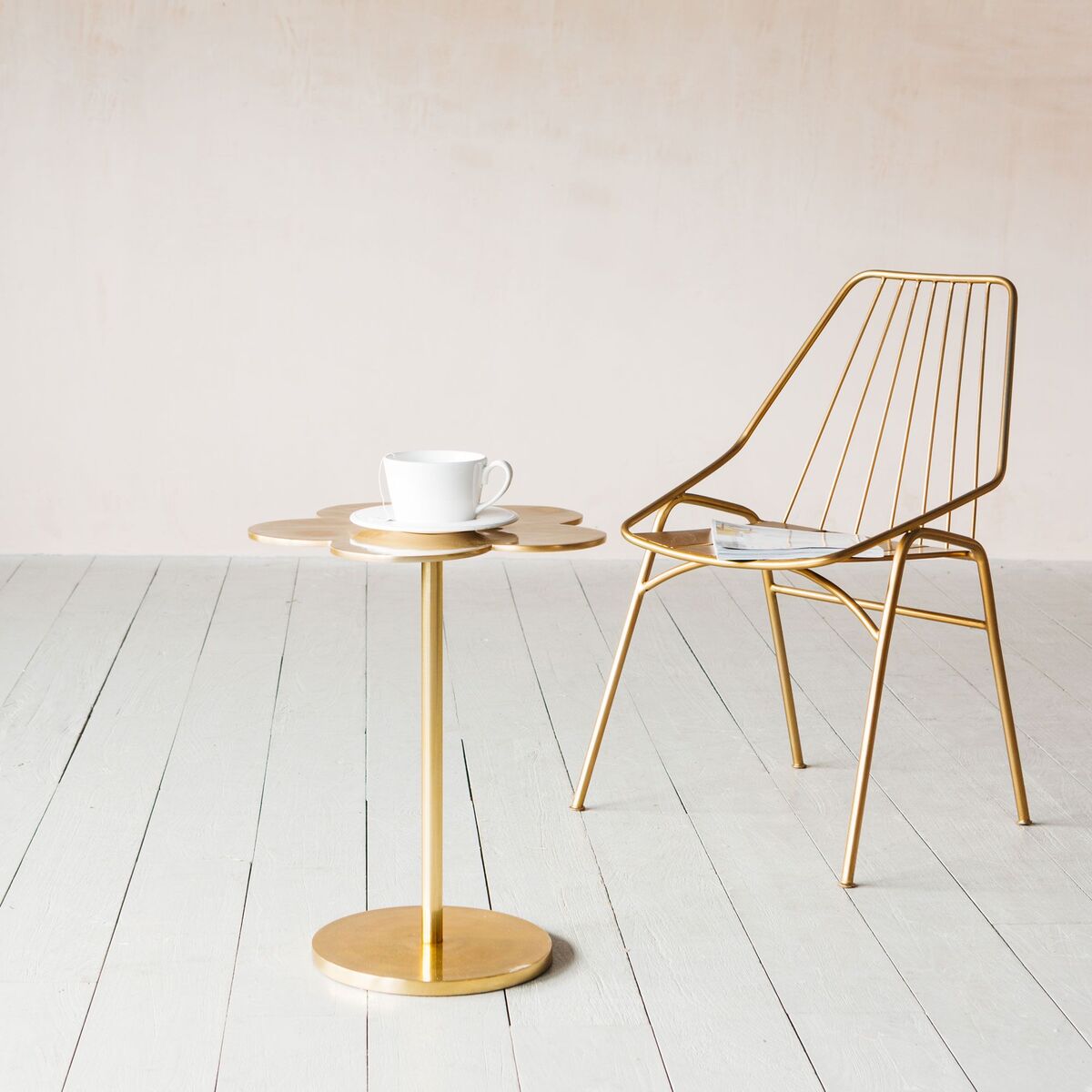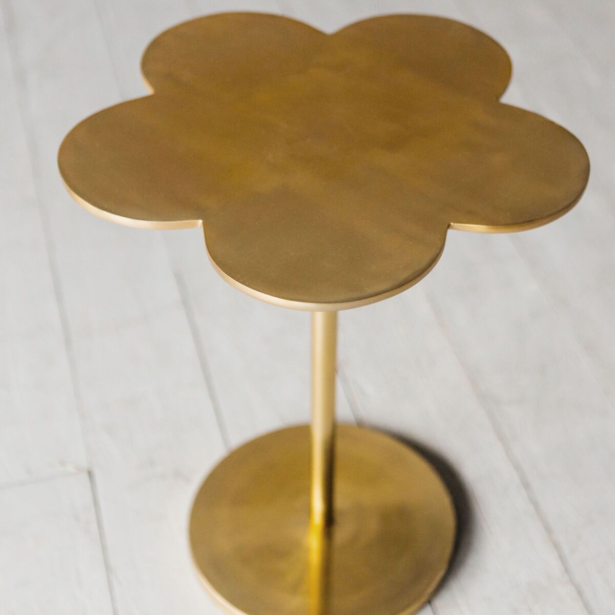 I love this side table for its playful yet elegant shape, which adds a touch of charm to both contemporary and classic interiors. The daisy-inspired design makes it a versatile piece that works well in living rooms as a decorative side table or in bedrooms as a stylish bedside table. Its metallic finish brings a subtle glamour, perfect for adding a statement element without overwhelming the space. For styling tips, try pairing it with bold ceramics, a small potted plant, or a metallic lamp to emphasise its lustrous finish. It also works well with marble or glass surfaces to create a layered, sophisticated look. Keep it uncluttered to highlight its unique shape and let it serve as both a practical and decorative feature.
