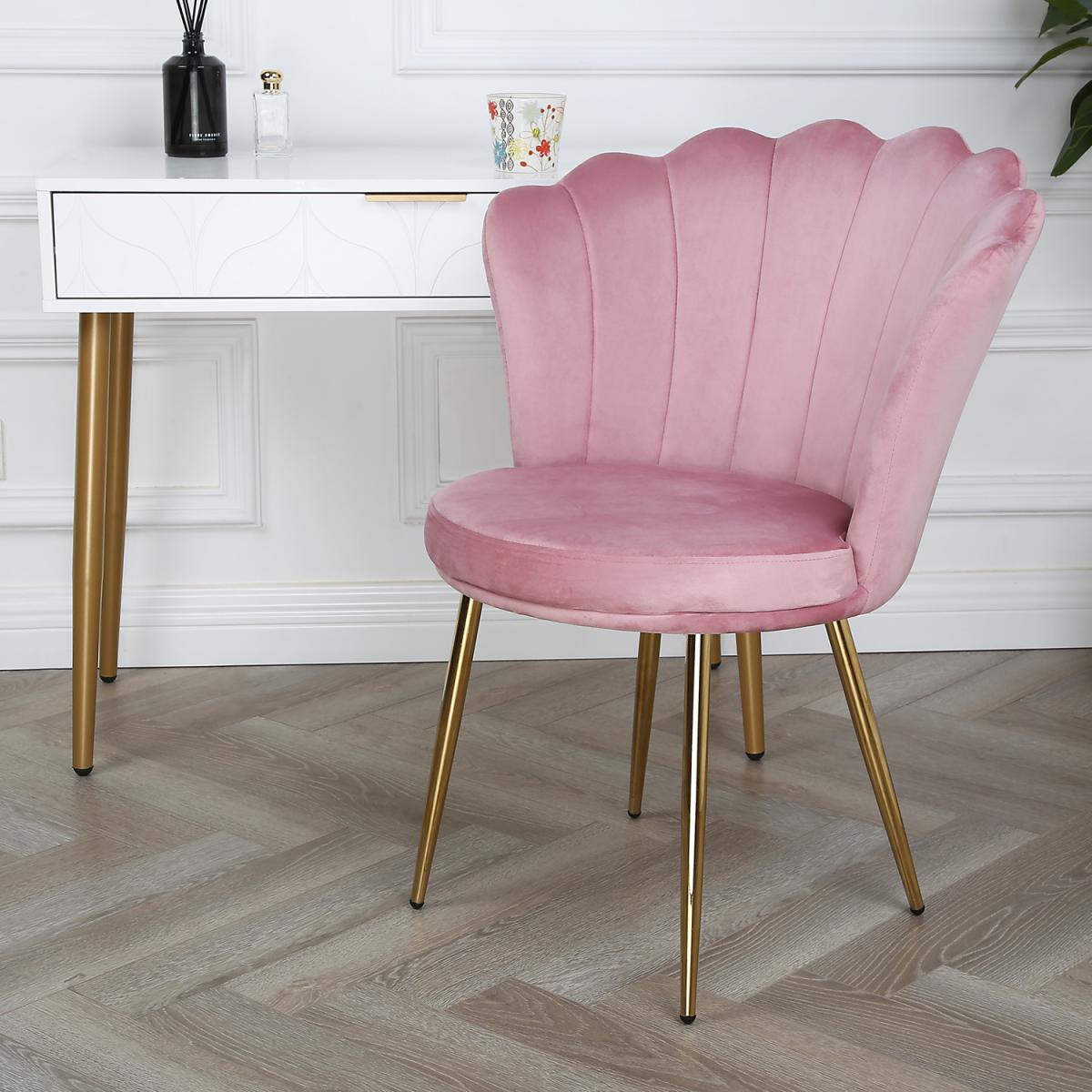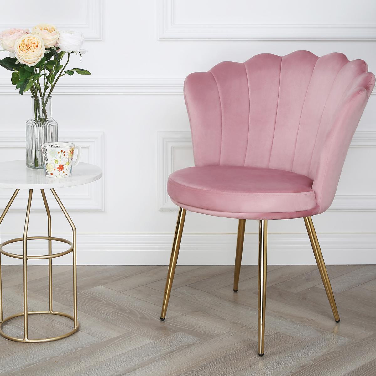 This Daisy Accent Chair with scalloped back armchair is the perfect addition to your living room, bedroom, or study! Its contemporary design features a comfortable seat, petal-shaped back with armrests, and a sturdy steel base. The chair is upholstered in a luxurious silver-grey velvet fabric that is soft to the touch and durable. The chair is also height-adjustable to provide optimal comfort and support. The design is sure to liven up your space and make it look modern and chic. Featuring highly intriguing elegance, this Daisy velvet accent chair will grace your home with its sophisticated design that accentuates any interior decor. This accent chair in grey, green and pink colours is expertly upholstered with a glamorous finish. It is soft to touch and highly comfortable to sit on while matching the interior decoration of your interior spaces. You will enjoy great relaxation and comfort as you sit back on its strongly built backrest. To improve its elegance and beauty, this velvet accent chair is constructed with titanium golden plated legs that are sturdy and prevent any wobbling movement.