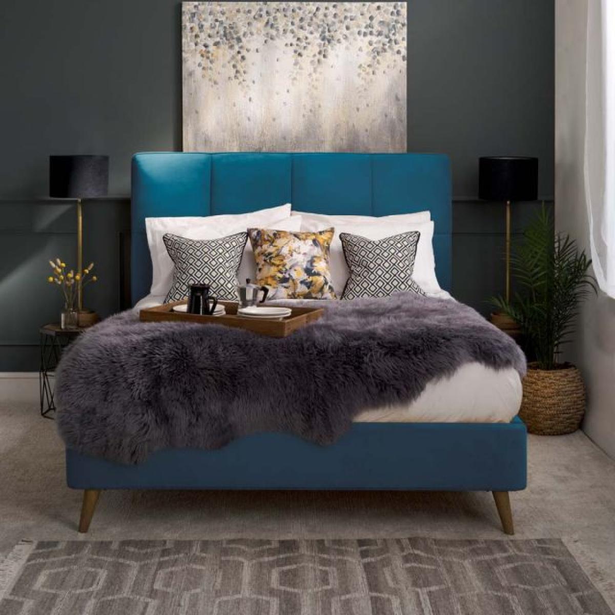 The Daisy velvet bedframe in Teal is a stunning and modern design with two rows of square padding detail on the headboard. The bed is also swathed up each side with a soft velvet upholstery and across the footend. Featuring turned wooden legs this bed is a true statement piece and is a perfect upgrade for the bedroom. The bed is easy to assemble and comes with a slatted base.