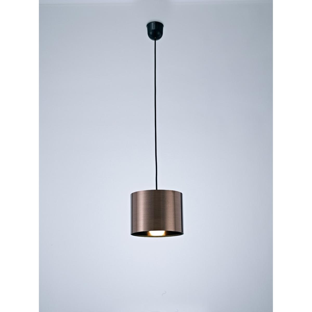 This is a collection of single adjustable E27 pendants with cylindrical shades. Each pendant is available in three different sizes. The most enticing aspect of this range are the ultra-modern materials and colour finishes. The entirety of the shades are composed from a metallic effect material and finished in either gun metal, copper, chrome or bronze. These metallic characteristics are perfectly offset against the matte black cable and ceiling cup making this an ideal modern lighting solution.