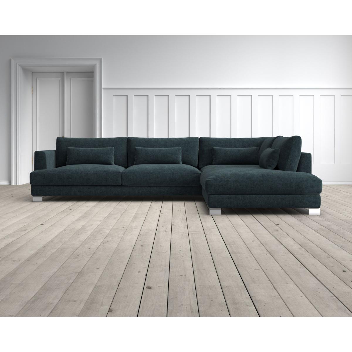 Dakota 3 Seater Right Chaise - Navy Blue Luxe Chenille