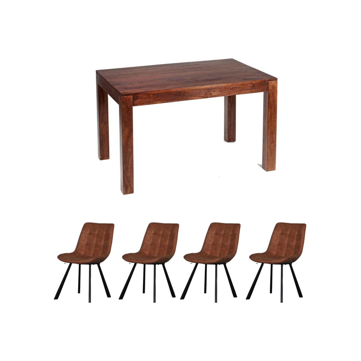 Dakota 4Ft Medium Mango Wood Dining Table Set With 4 Chairs - Dark Wood