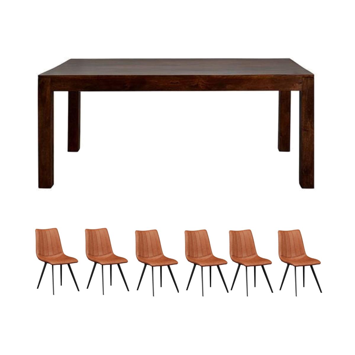 Dakota 6Ft Mango Wooden Large Dining Table Set With 6 Chairs - Dark Wood