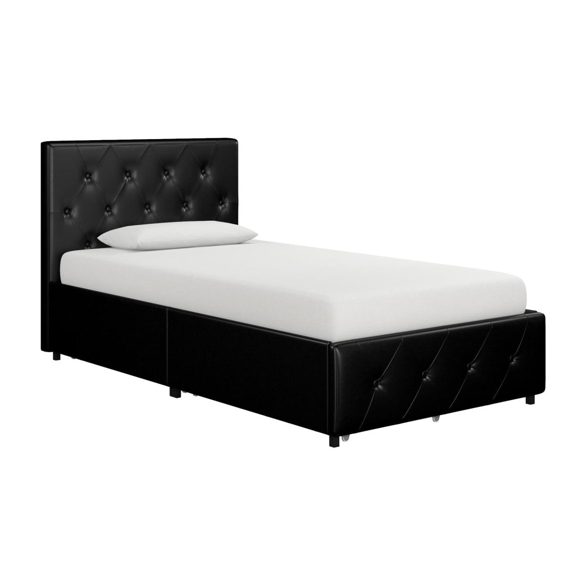 Give yourself the bed you deserve! The Dakota Upholstered Bed with Storage Drawers ticks off all the elements for a perfect bed. Style, comfort and functionality! This contemporary and chic bed frame is designed with graceful button tufted diamond patterns on both the headboard and footboard and upholstered in faux leather.