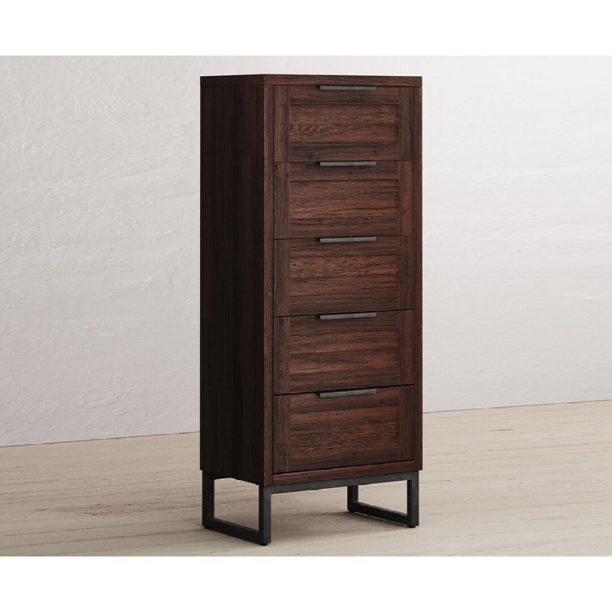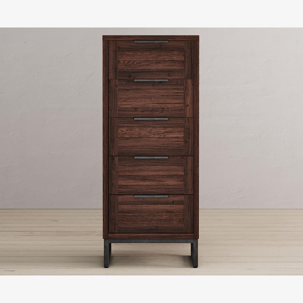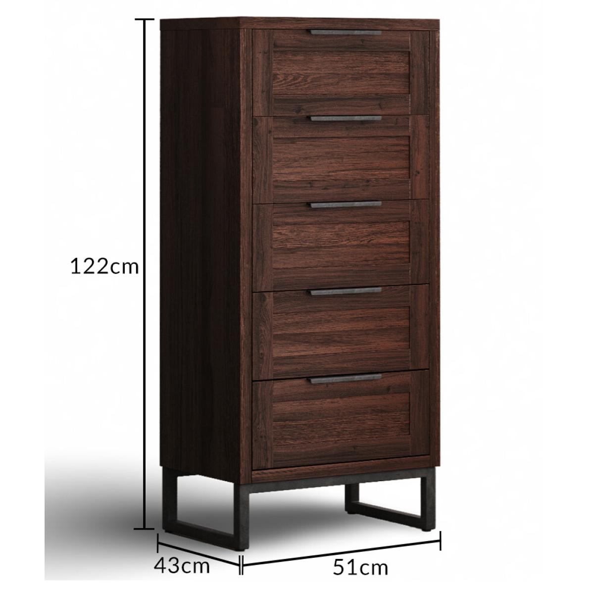 Dakota Dark Acacia and Metal 5 Drawer Tallboy Chest