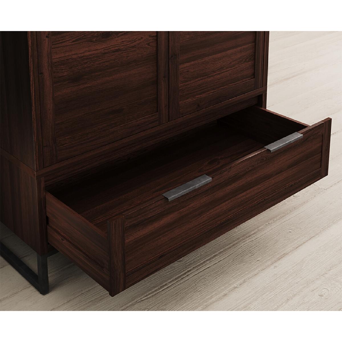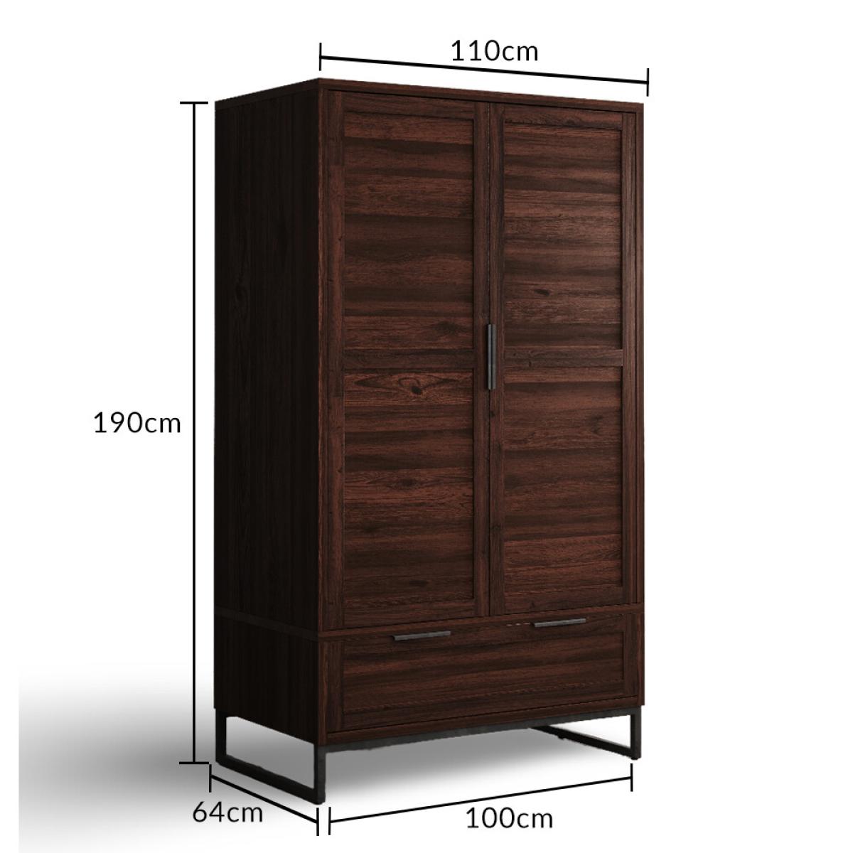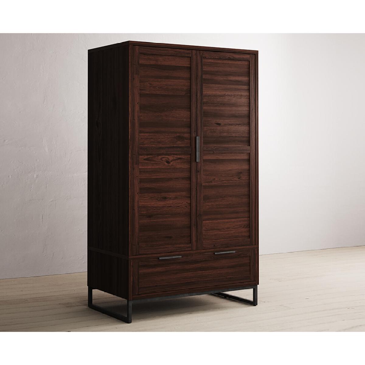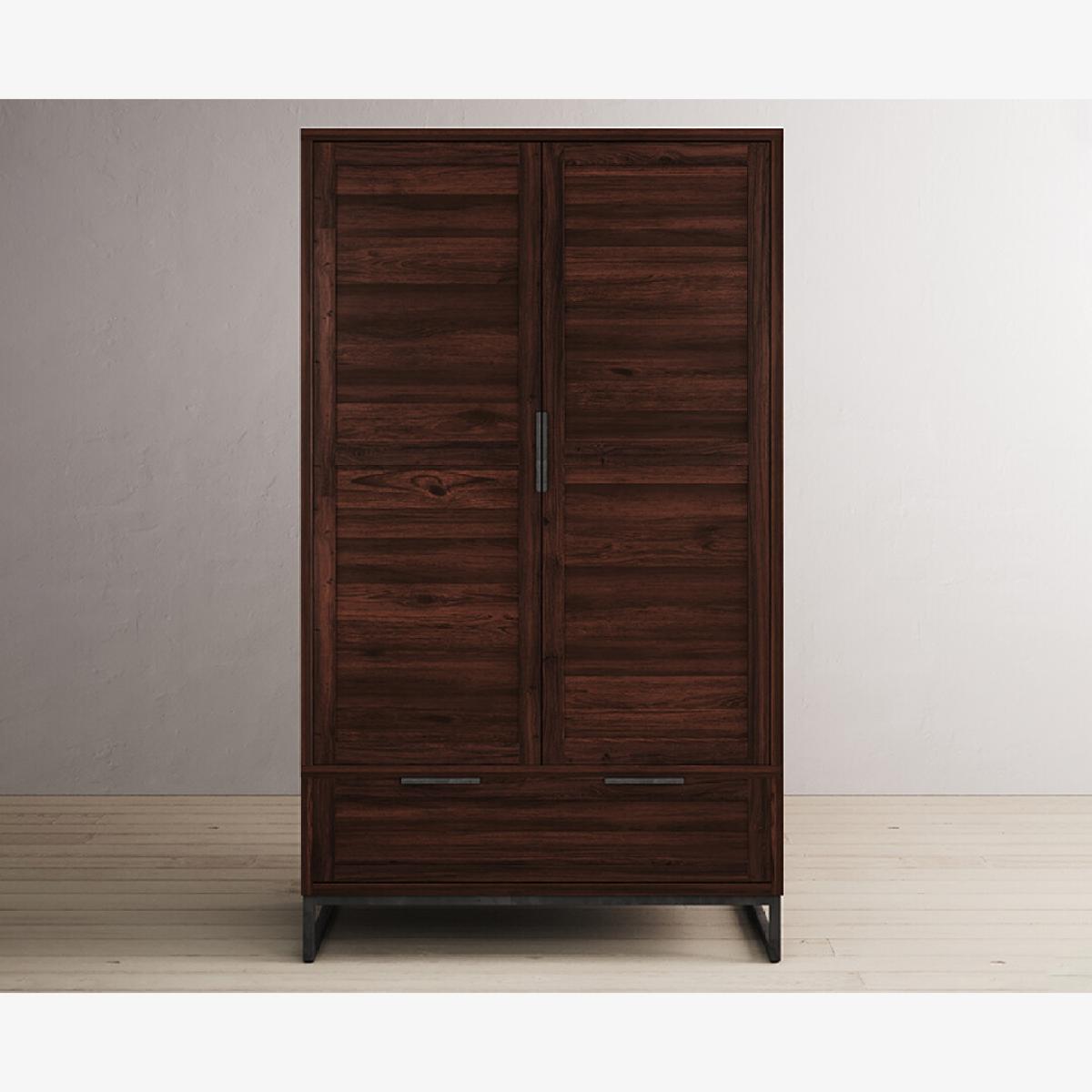 The Dakota Dark Acacia and Metal Double Wardrobe is crafted from 100% solid hardwood and features plenty of storage, complete with a lower dovetail drawer.