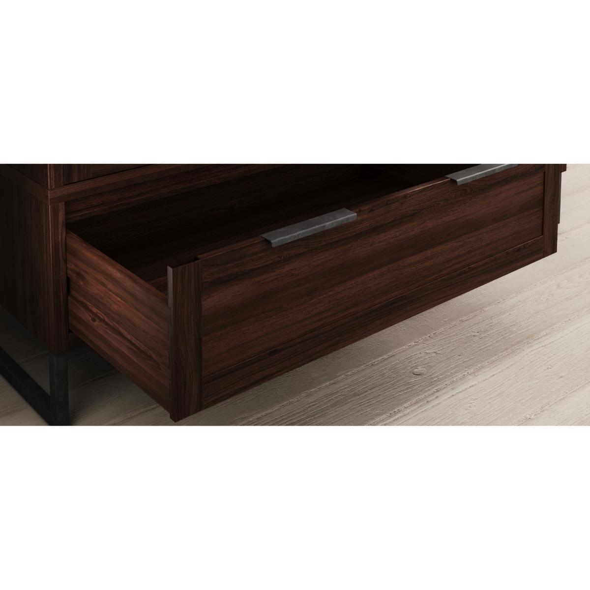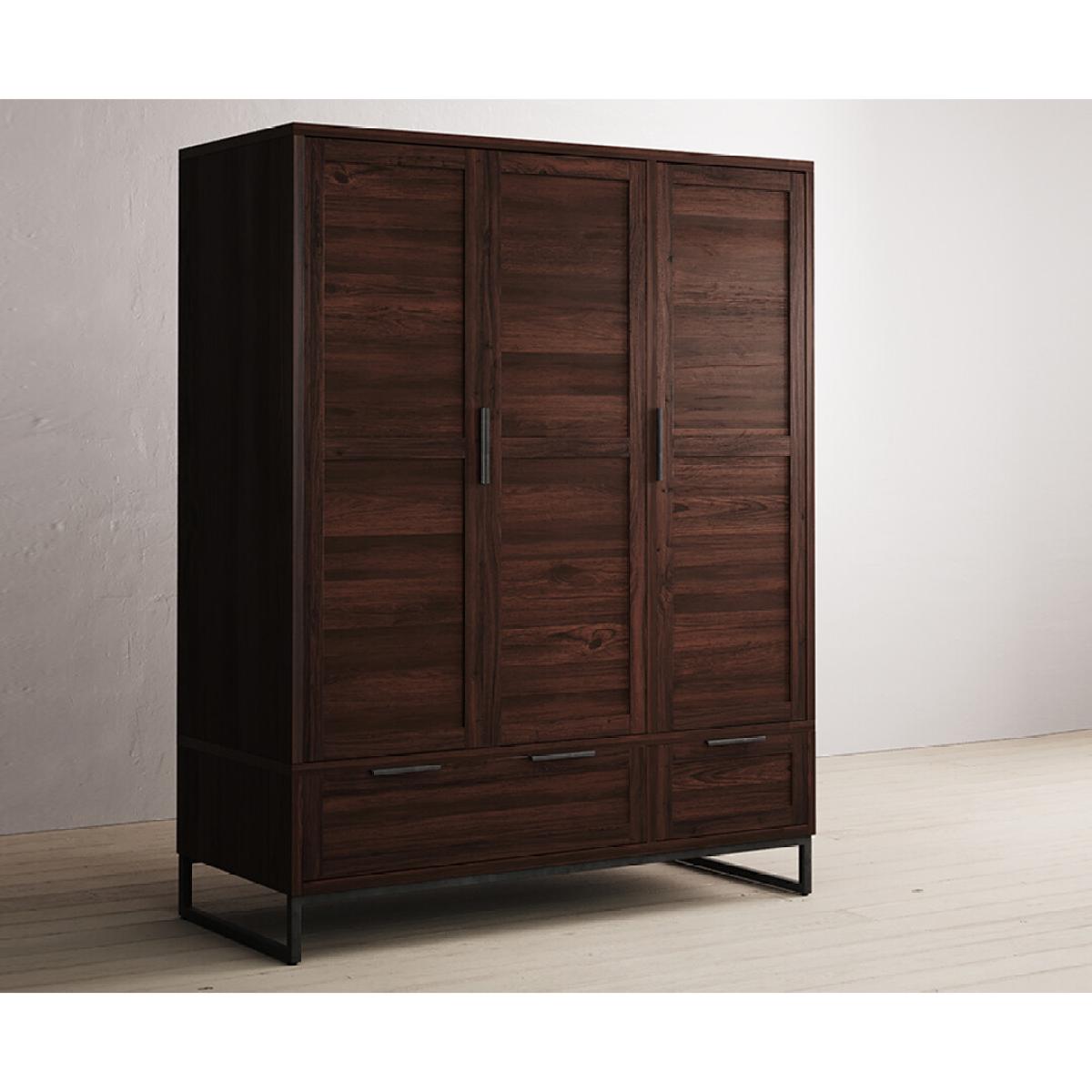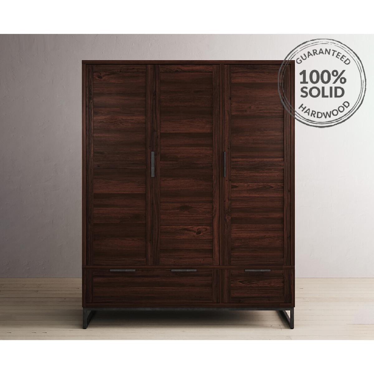 The Dakota Dark Acacia and Metal Triple Wardrobe is crafted from 100% solid hardwood and features plenty of hanging space and two dovetail drawers.