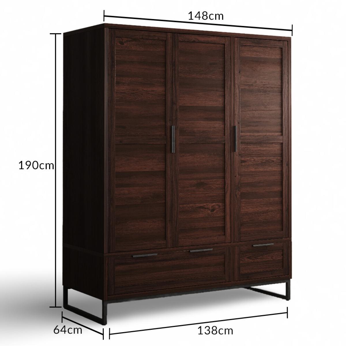 Dakota Dark Acacia and Metal Triple Wardrobe