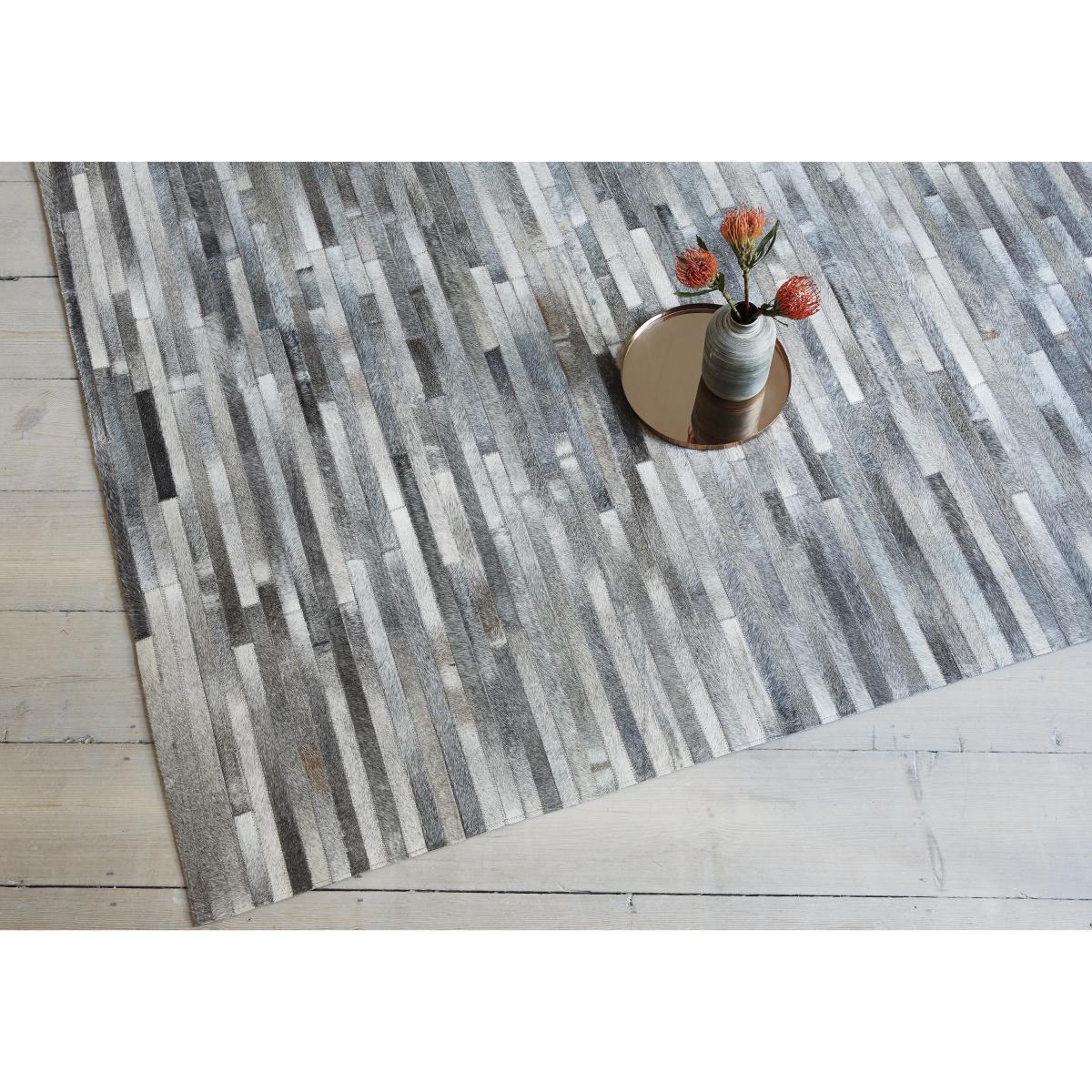 Modern style meets natural beauty in the Dakota leather rug. It’s exquisitely hand stitched from multiple panels of cowhide with real craftsmanship. A choice of attractive designs including striped, chevron and parquet show off the authentic texture and earthy tones. A fabulous statement rug for the wild at heart. Show-stopping 100% leather statement rug. Hand stitched from multiple panels of cowhide. Authentic texture and earthy colours. In a choice of striking designs. Designs include chevron, stripe and parquet. Hand stitched by skilled craftspeople in India. Dimensions: 160x230cm.