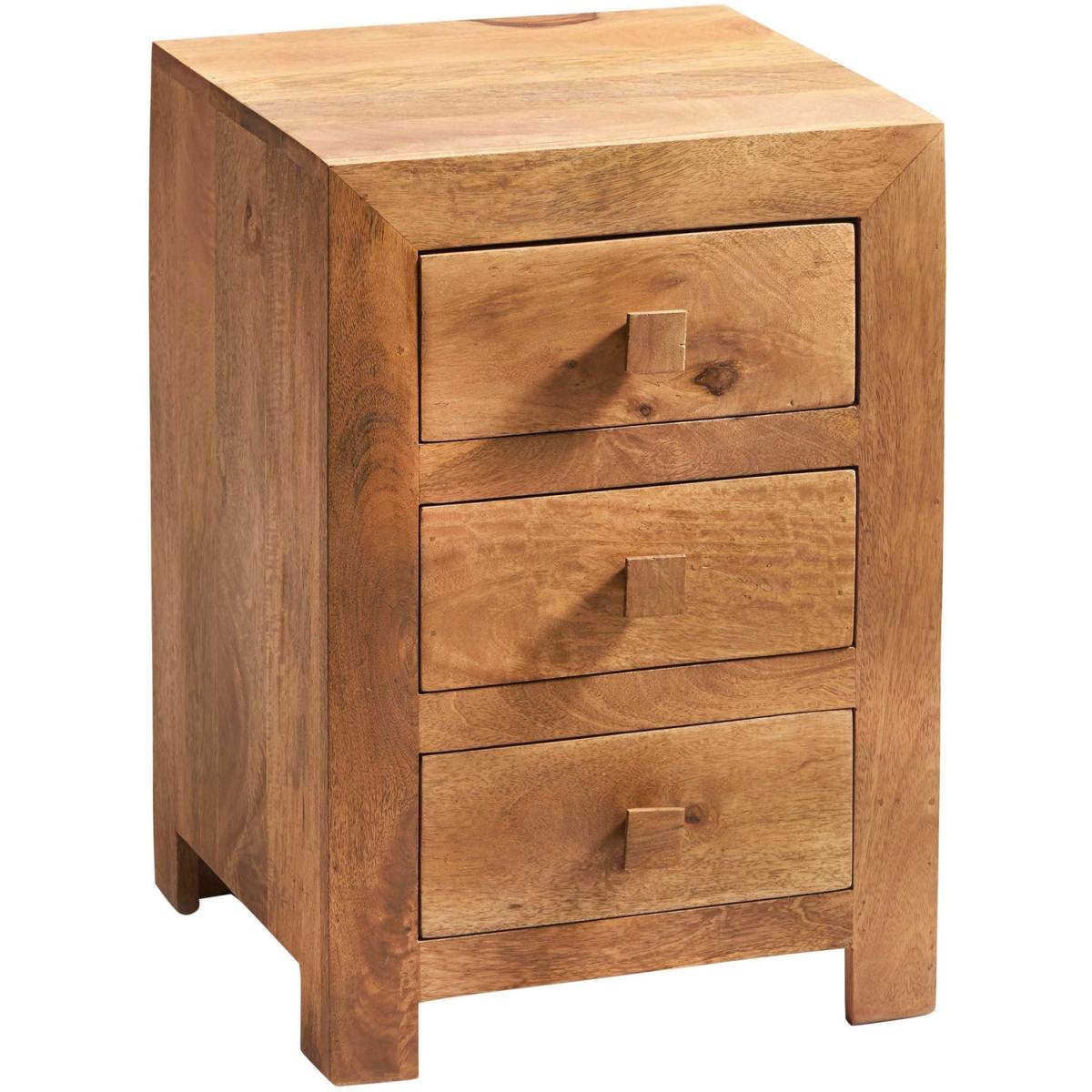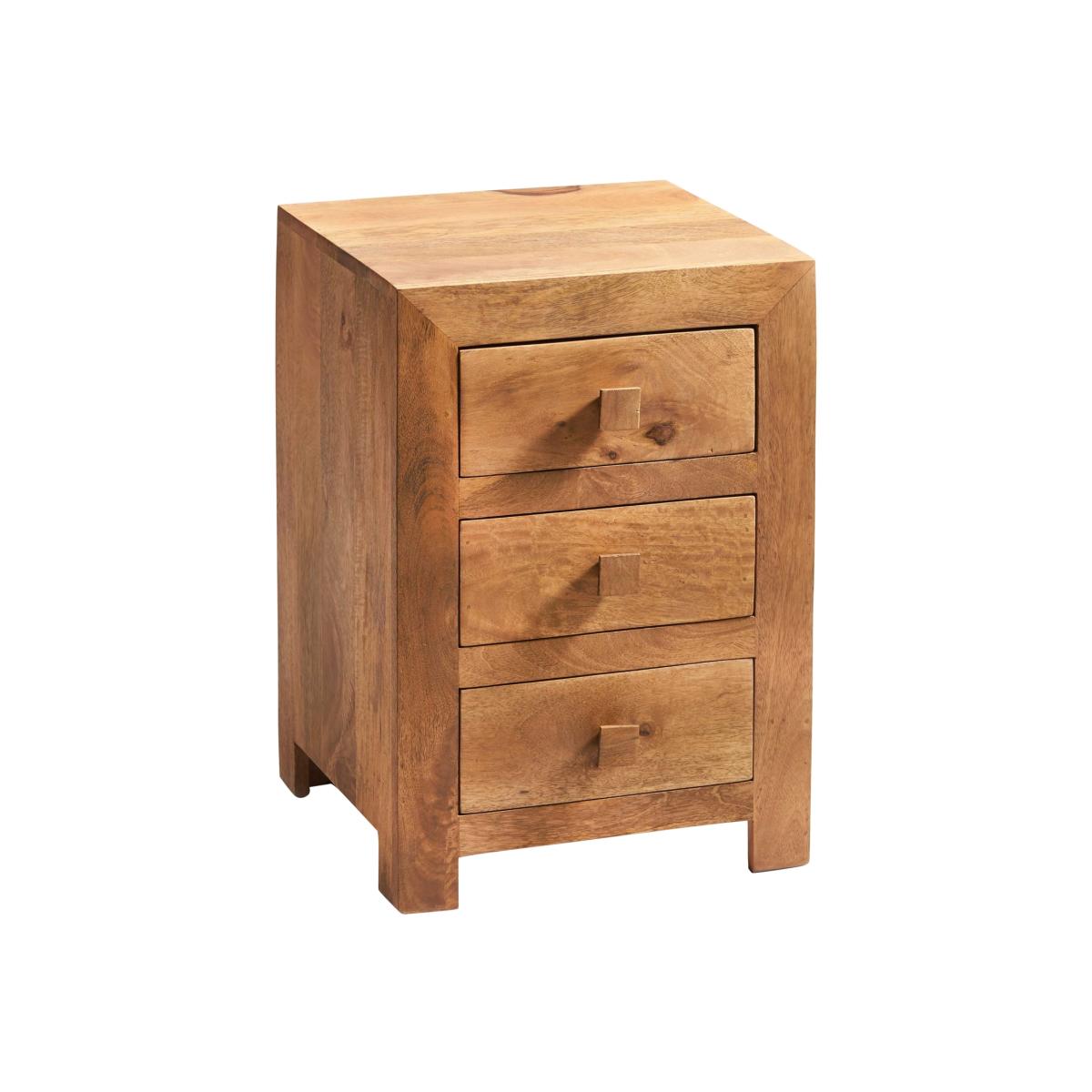 Dakota Light Mango 3 Drawer Bedside Cabinet - Light Wood