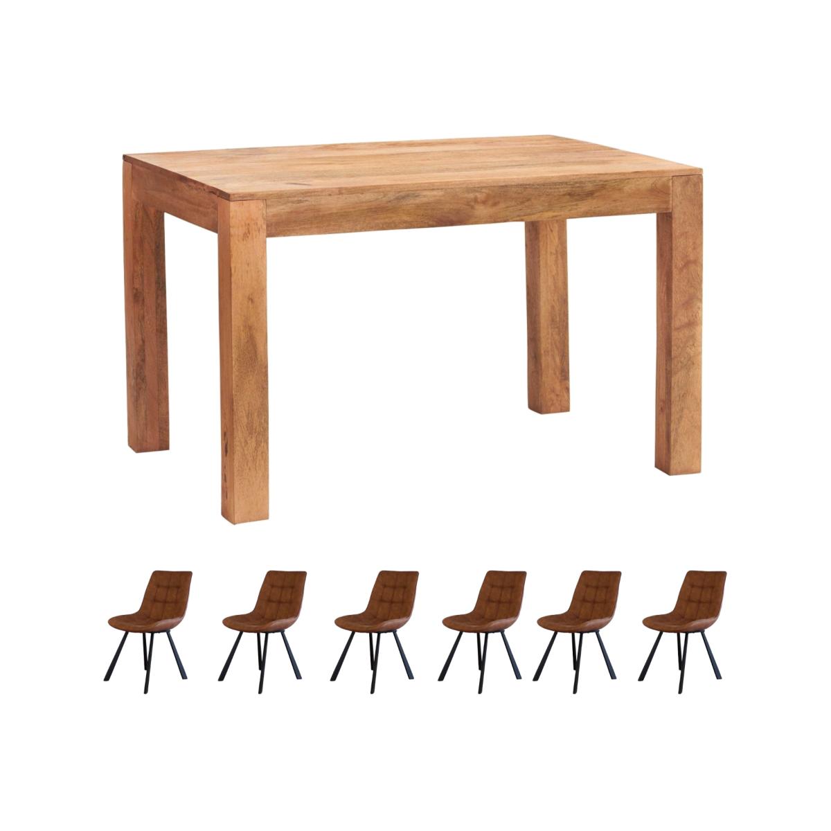 Our Dakota Light Mango Large Dining Table Set provides ample room for all kinds of dinners, parties and family meals. Boasting a chunky, sturdy design, its legs come detached for easy delivery and can be fixed quickly with a basic nut and bolt. The set includes Industrial Style Chairs, featuring steel tapered tubes with black powder coating and a comfy, Light Brown Tan PU leather seat.