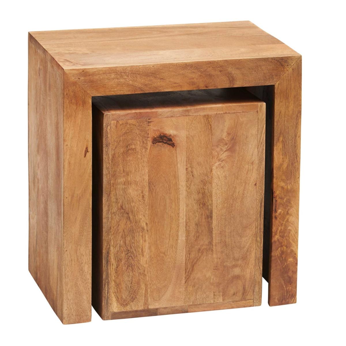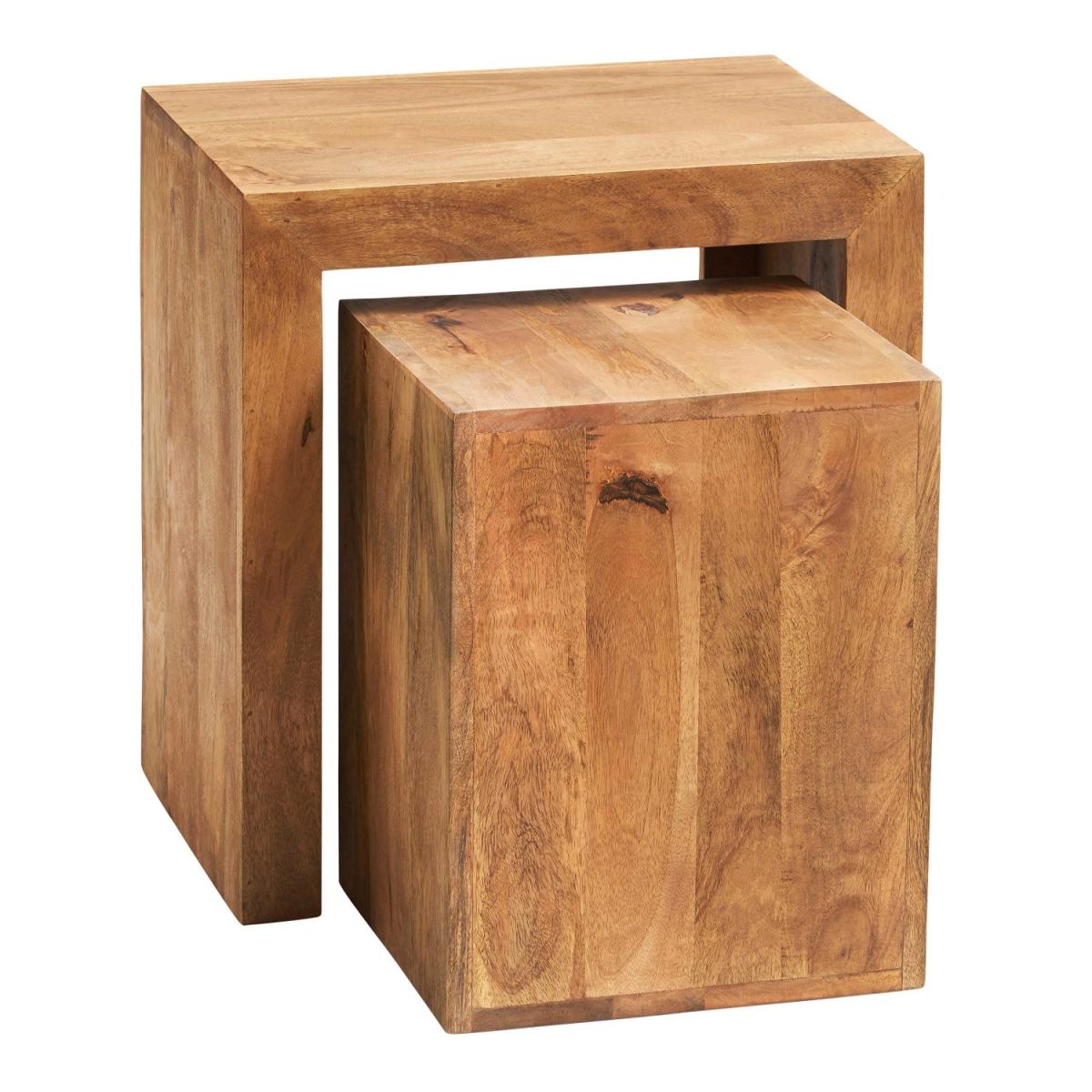 Dakota Light Mango Cubed Nest of 2 Tables - Light Wood