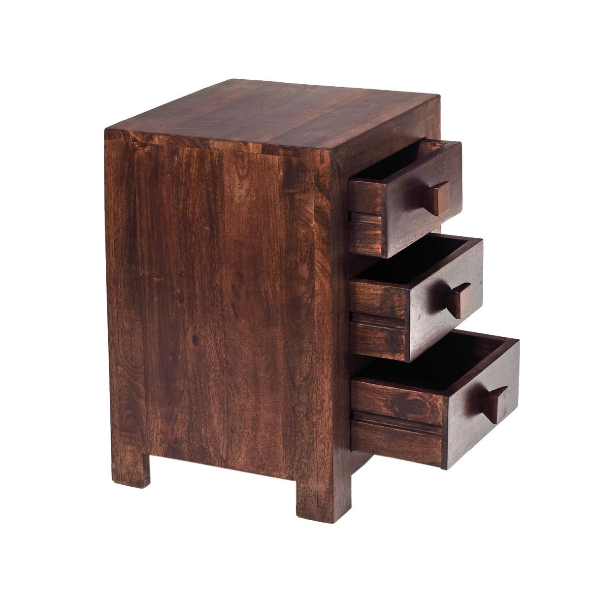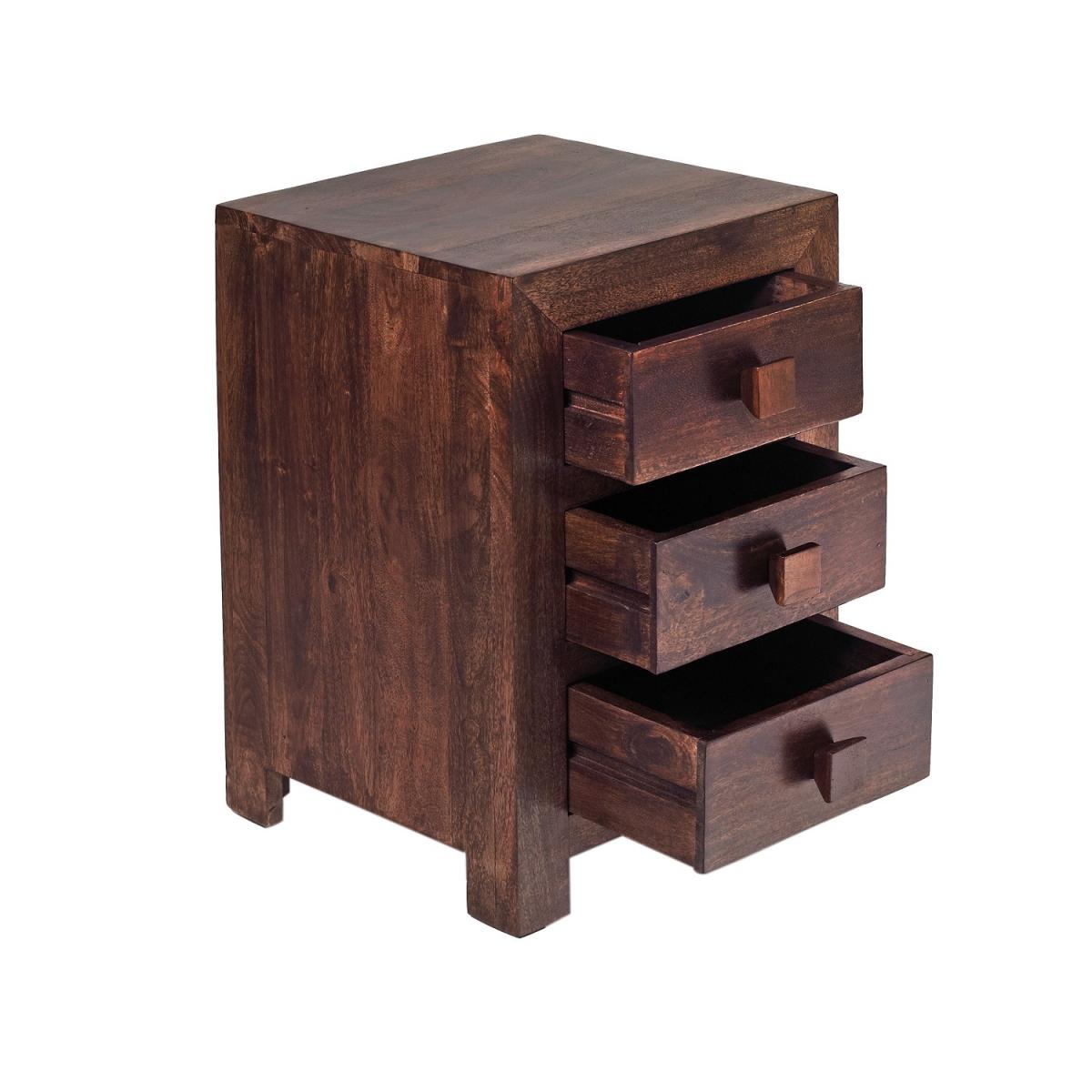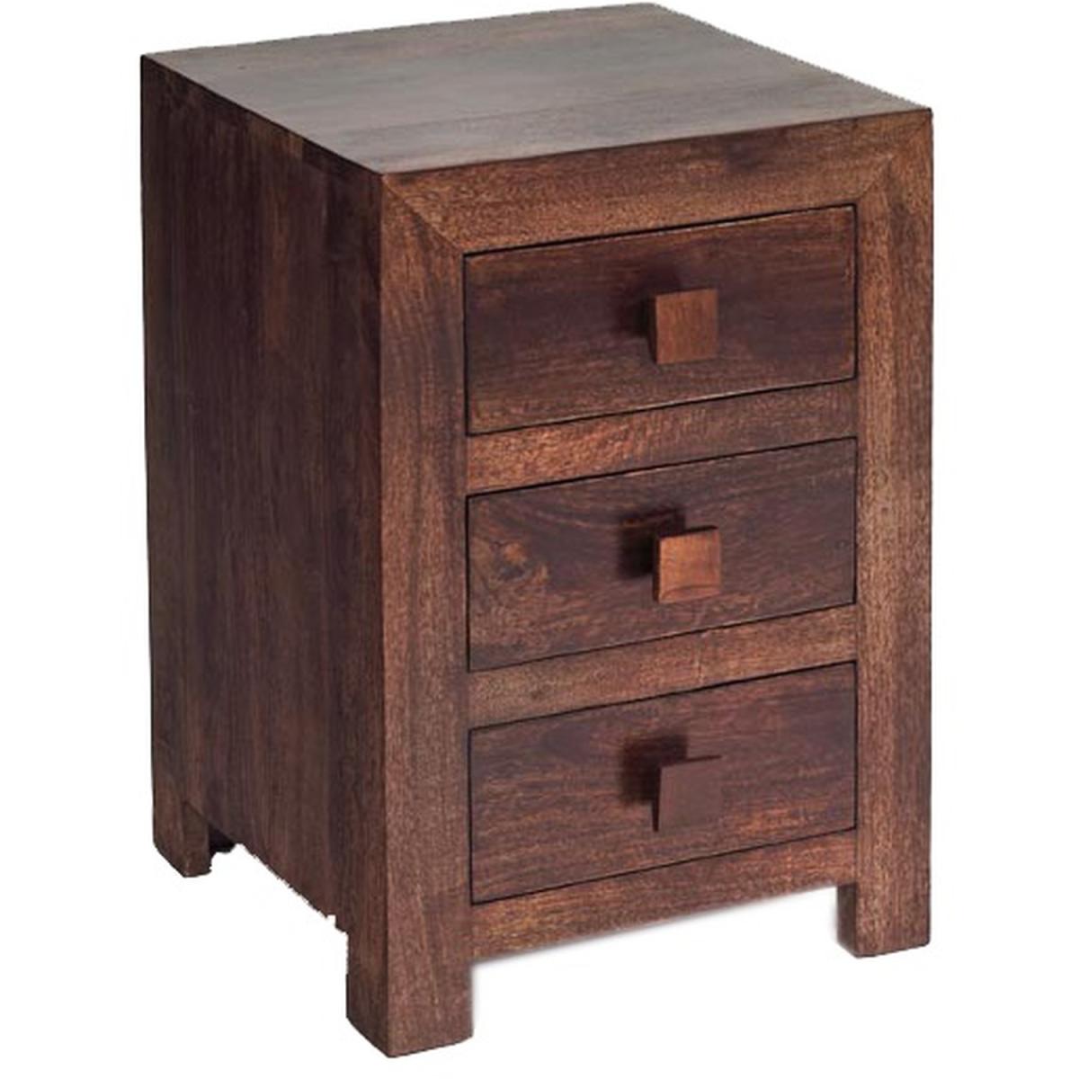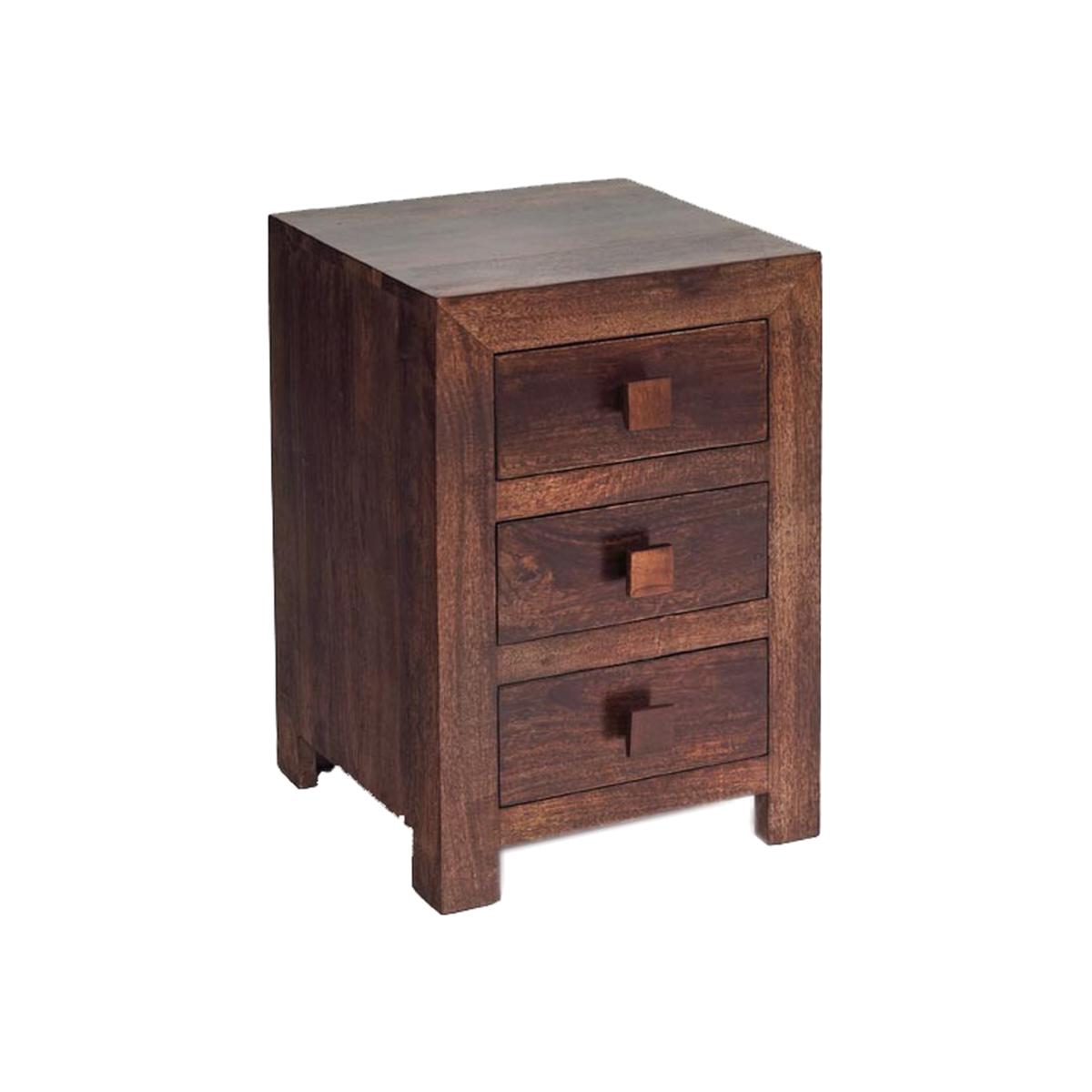 Dakota Mango 3 Drawer Bedside - Dark Wood