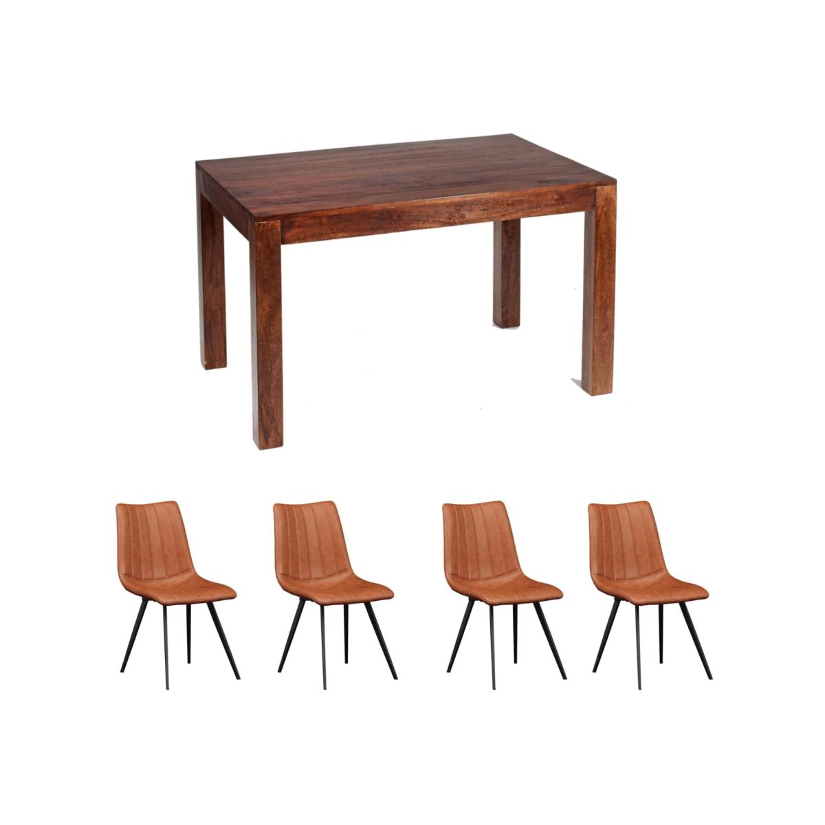 Dakota Mango Wood 4Ft Medium Dining Table Set With 4 Chairs - Dark Wood