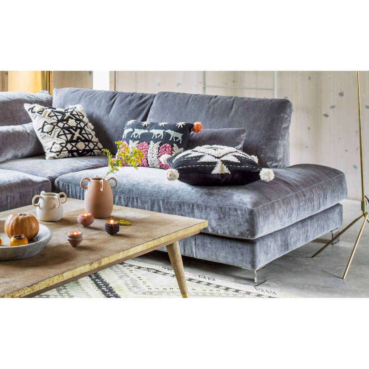 Our Dakota collection perfectly combines sumptuous comfort and contemporary style. With clean, simple lines, modern edges and polished chrome feet, this collection is designed to add understated style to your interior space. Create your perfect combination with a wide range of sizes, fabrics and colours. Loose arm covers and lumbar cushions are included for armchairs and sofas. Lead time 8-10 weeks. Please refer to our delivery information. All pieces from this collection will be delivered without the legs attached. The corner sofas will be delivered in two parts. Our delivery specialists will assemble your item for you and take away the packaging.