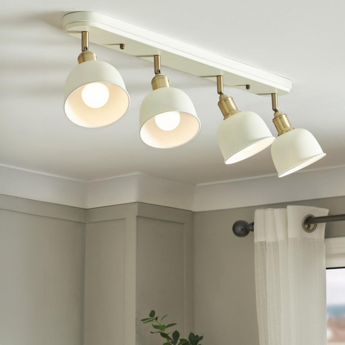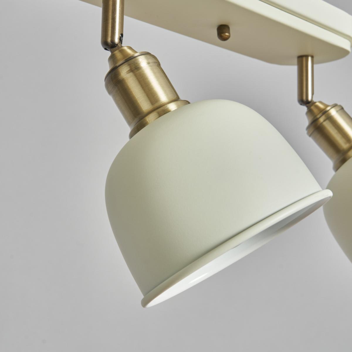 Achieve flexible and stylish lighting with the Dale Galley 4 Light Adjustable Spotlight Bar in Satin Ivory. Designed for optimal illumination, this ceiling fixture features four adjustable spotlights, allowing you to direct light exactly where you need it. The sleek satin ivory finish and antique brass accents add a sophisticated touch, making it ideal for industrial kitchens, offices, or living spaces. Adjustable spotlights provide customisable lighting angles; Antique brass accents are perfect for vintage decor; Ideal for low ceilings, specifically near cabinets.
