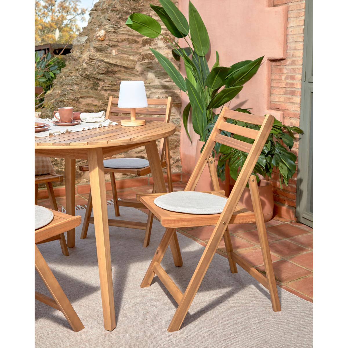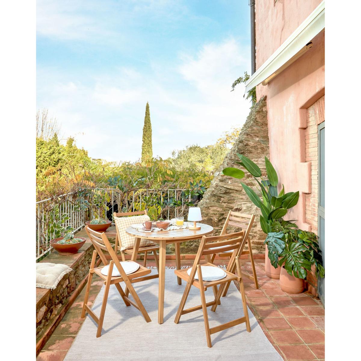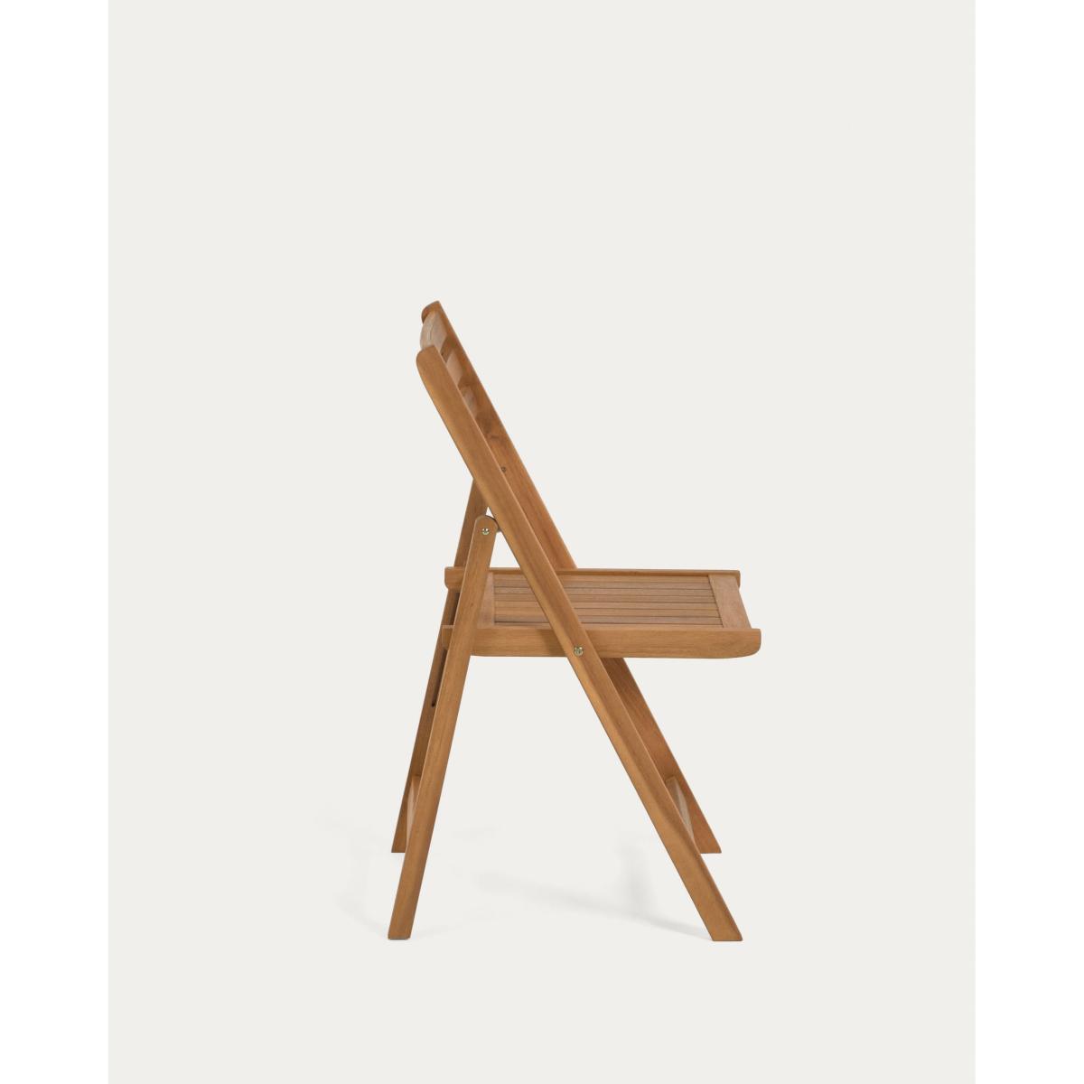 I love this foldaway chair for its clean lines and natural FSC-acacia finish, making it a versatile addition to many interiors. It works particularly well in relaxed, boho, or Scandinavian spaces where natural textures are key. For styling tips, consider pairing it with a soft, patterned cushion for comfort or using it as an extra seat in a dining room that can be stashed away when not in use. Its foldaway feature makes it practical for small spaces or versatile use, like outdoor dining or as a bedside chair. Keeping it in its natural finish allows it to seamlessly blend with light wood furniture or contrast beautifully with darker tones for a modern touch.