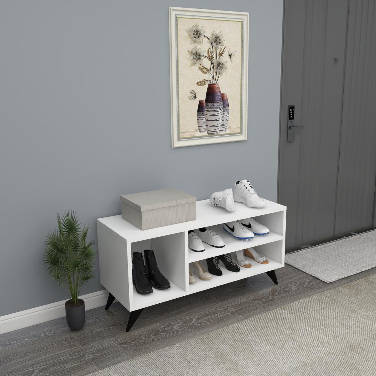 MATERIAL The shoe storage shelf is made of an 18 mm thick quality melamine-coated particleboard. The manufactured wood surface is water-resistant to some extent and the edges are banded with PVC edge banding tape. First-class assemblyinstallation hardware and accessories are used. Our products are produced from certified quality raw materials that do not contain carcinogenic substances and comply with European Union health norms. CLEANING You can clean your furniture with a dry cloth. Avoid prolonged contact of your product with moisture and water. ASSEMBLY The product will be delivered to the customer in the original package as disassembled. It is designed to be assembled by the customer using a power drill and screwdriver. Assembly instruction and installation hardware are included in the package. For fast and error-free installation, product parts are numbered with stickers in accordance with the assembly guide.