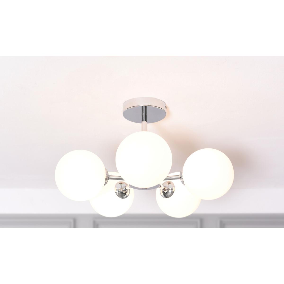 The Dallas 5 Light Flush Fitting is a modern and stylish piece to help you light up your home in style. The chrome-coloured fitting features sleek, white spheres for a futuristic feel that will light up your room from almost every angle. Sitting flush against your ceiling, this light would look wonderful in the living room or bedroom, giving you a calming sense of modernity every day.
