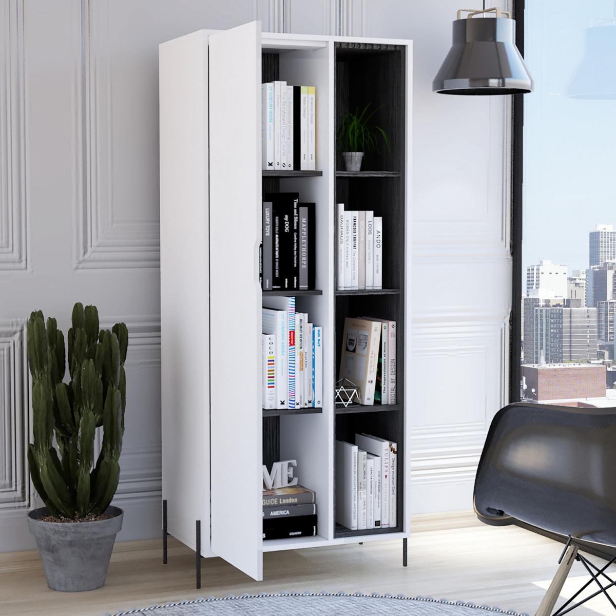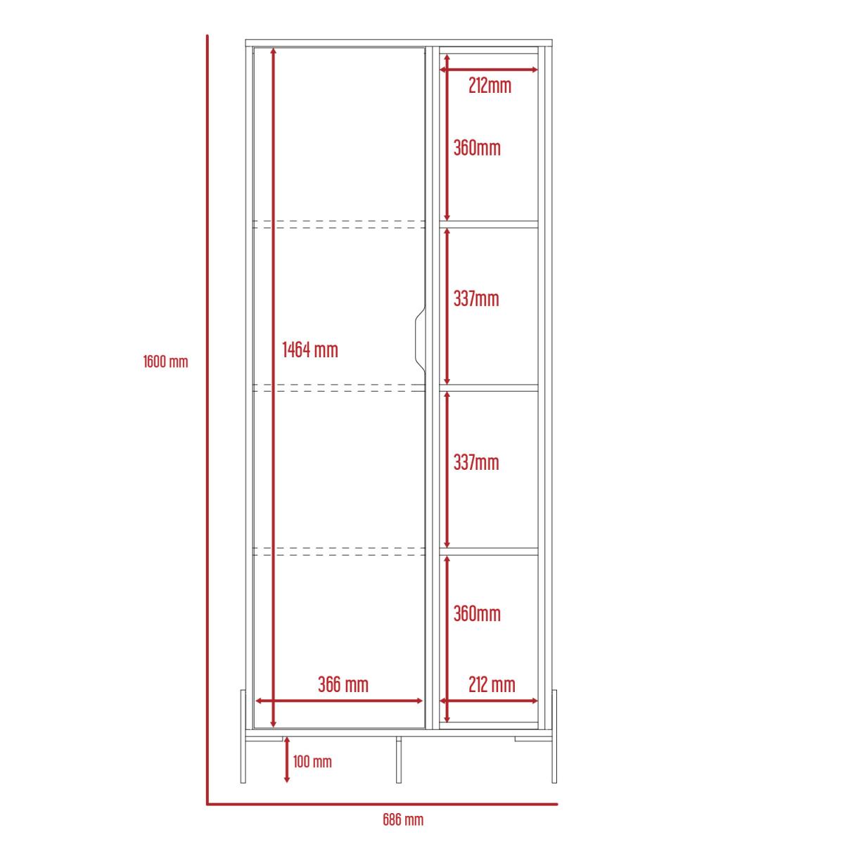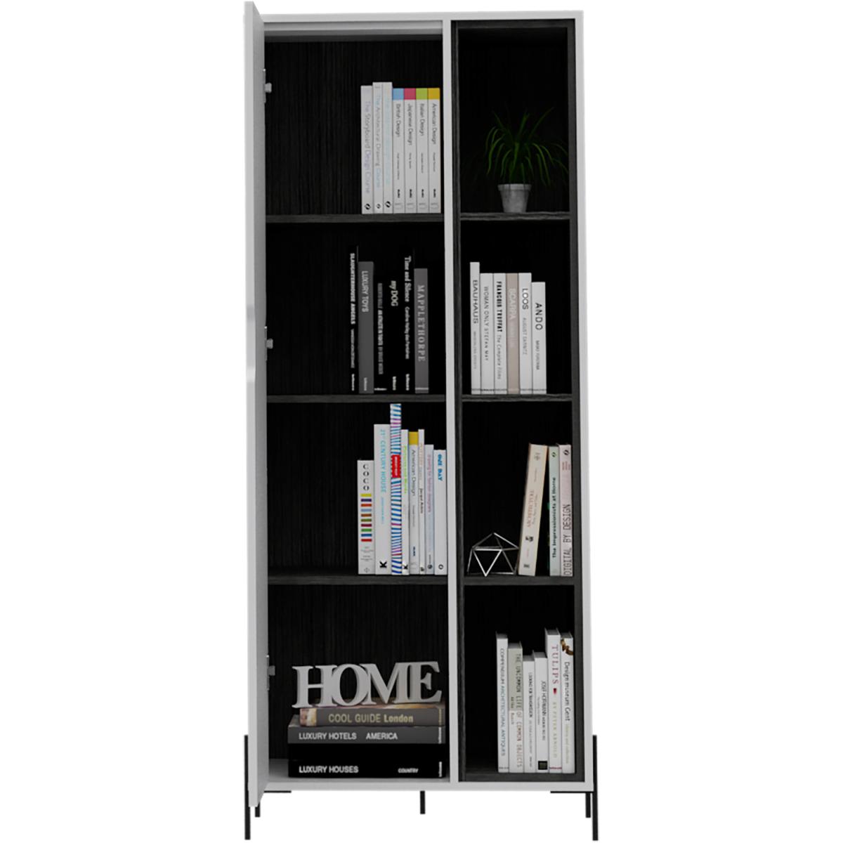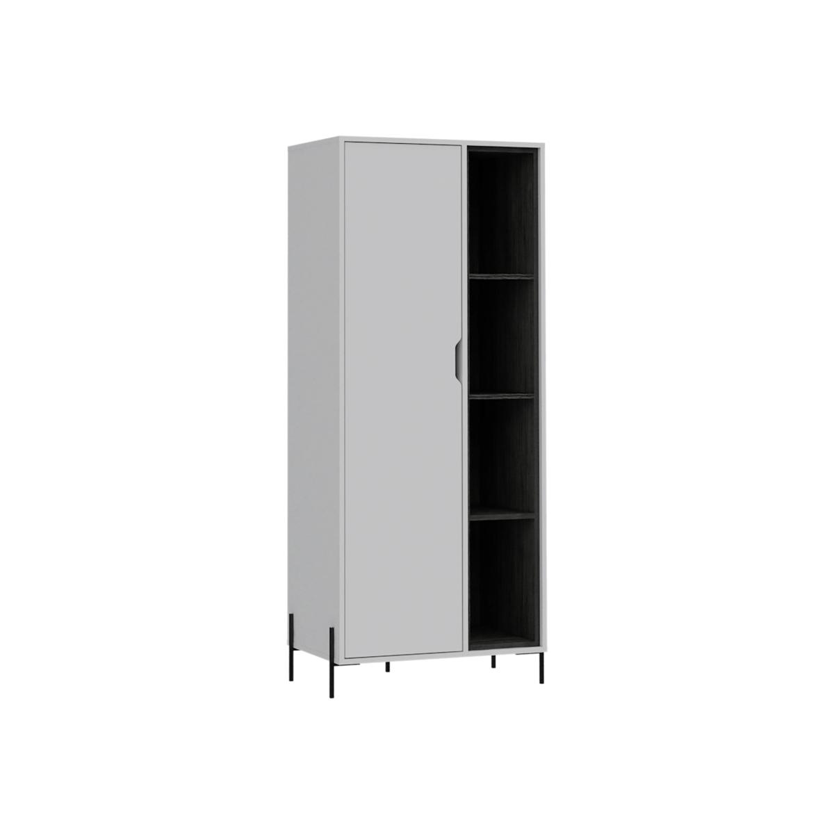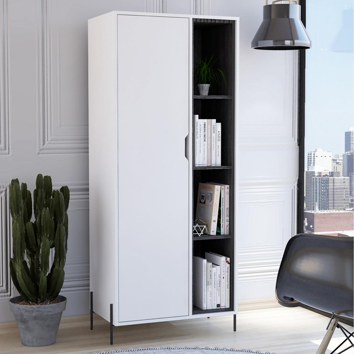 Our Dallas modern living collection is ideal for todays casual, open plan living style. Adventurous styling is applied to each piece to offer practical pieces with individuality. Cabinets have an easy to clean, hardwearing white finish with contrasting carbon grey woodgrain effect panels and slimline black metal legs. If you need a compact unit combining open and enclosed storage this piece is ideal. An open shelf section of contrasting carbon grey finish adds interest to this display cabinet, whilst the white door encloses storage with four useful areas accessed via a cut away handle opening.