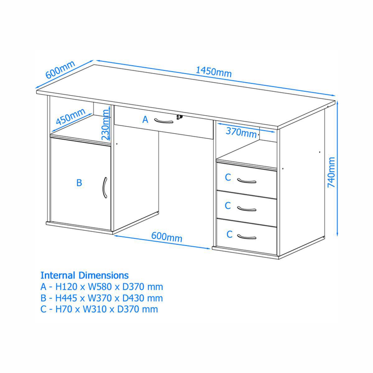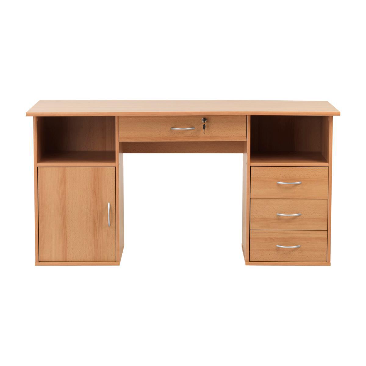 The Dallas is a traditional style desk boasting a wealth of storage space, in a beautiful Beech effect with chrome handles. It features a central lockable drawer, along with 3 additional stationery drawers, storage cupboard and 2 storage compartments, making the Dallas both functional and attractive.