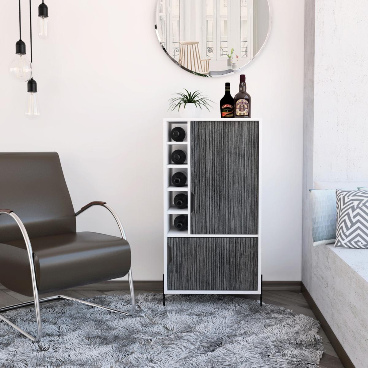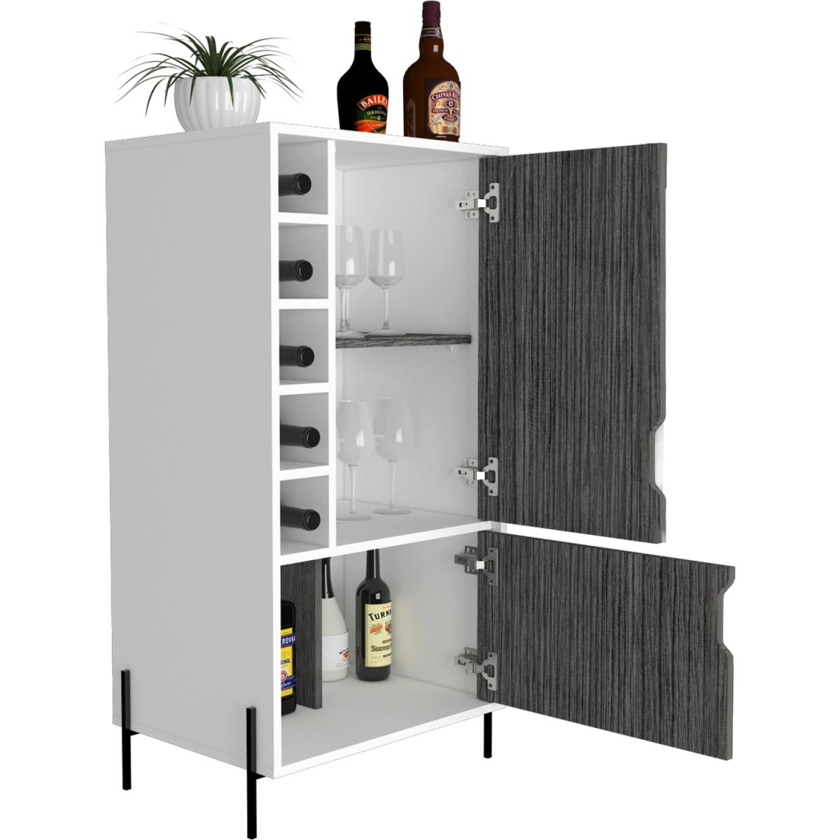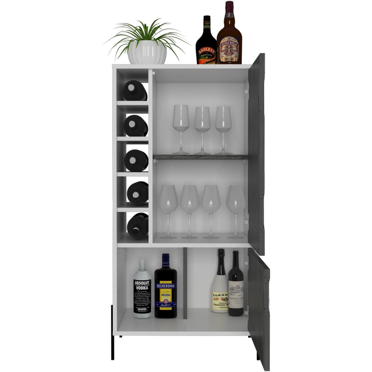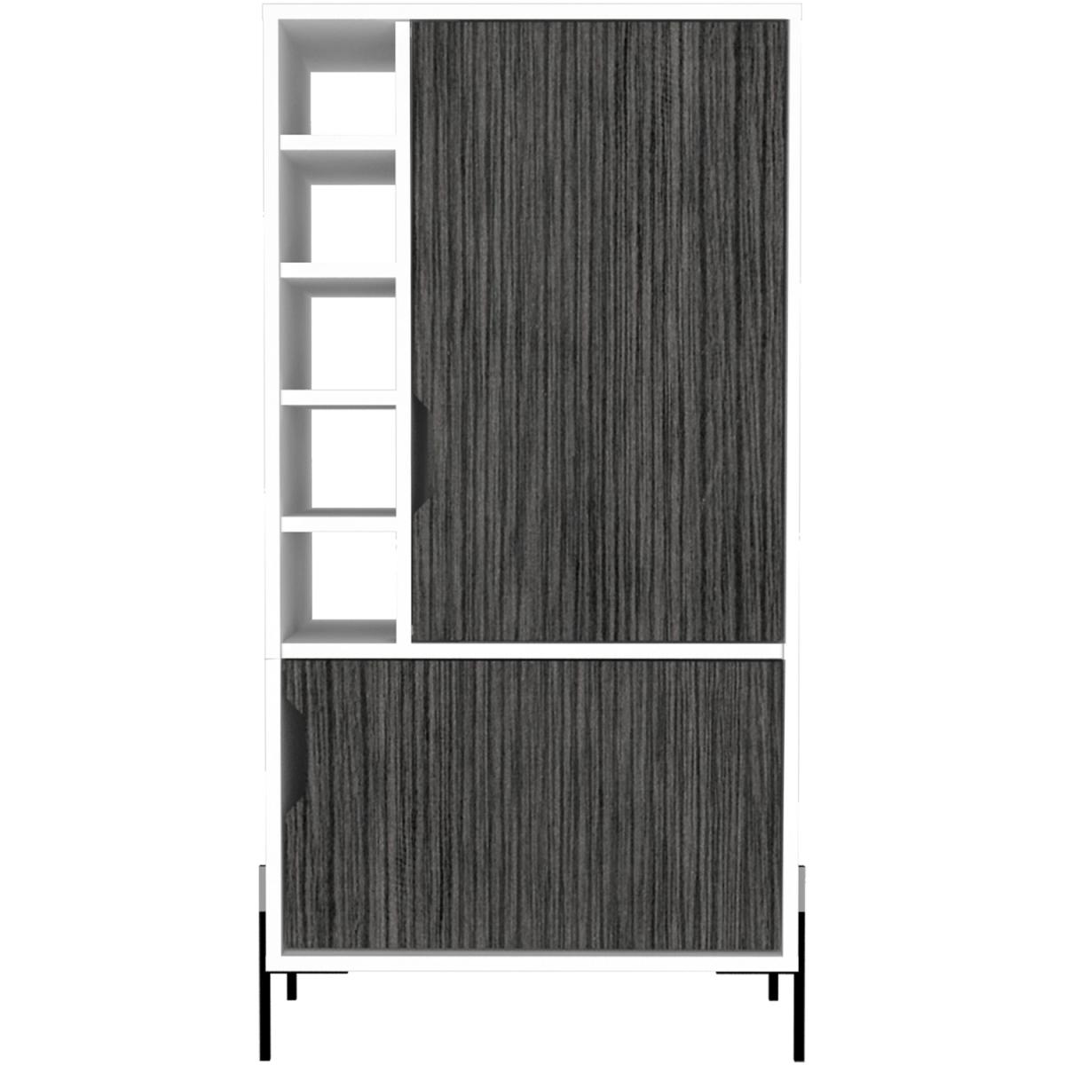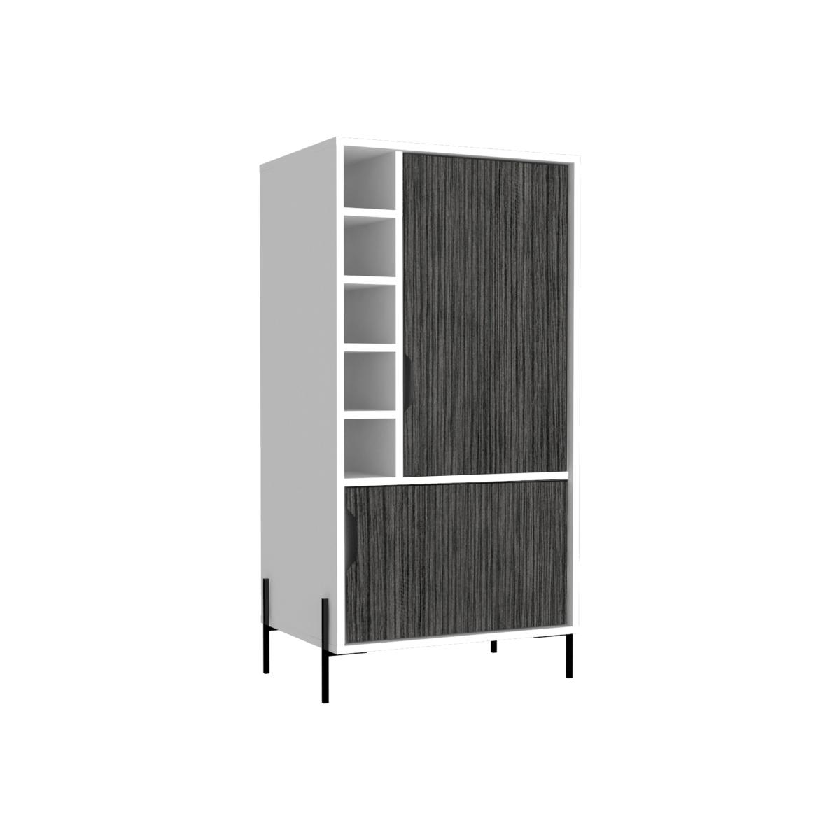Our Dallas modern living collection is ideal for todays casual, open plan living style. Adventurous styling is applied to each piece to offer practical pieces with individuality. Cabinets have an easy to clean, hardwearing white finish with contrasting carbon grey woodgrain effect fronts with slimline black metal legs. Your very own party bar, all neatly concealed in this drinks and storage unit. A side section for bottles is accompanied by cupboard storage with internal shelf which is ideal for glassware, whilst the base cupboard is neatly divided to allow more storage of bottles, glassware or anything you want to keep handy but out of sight.